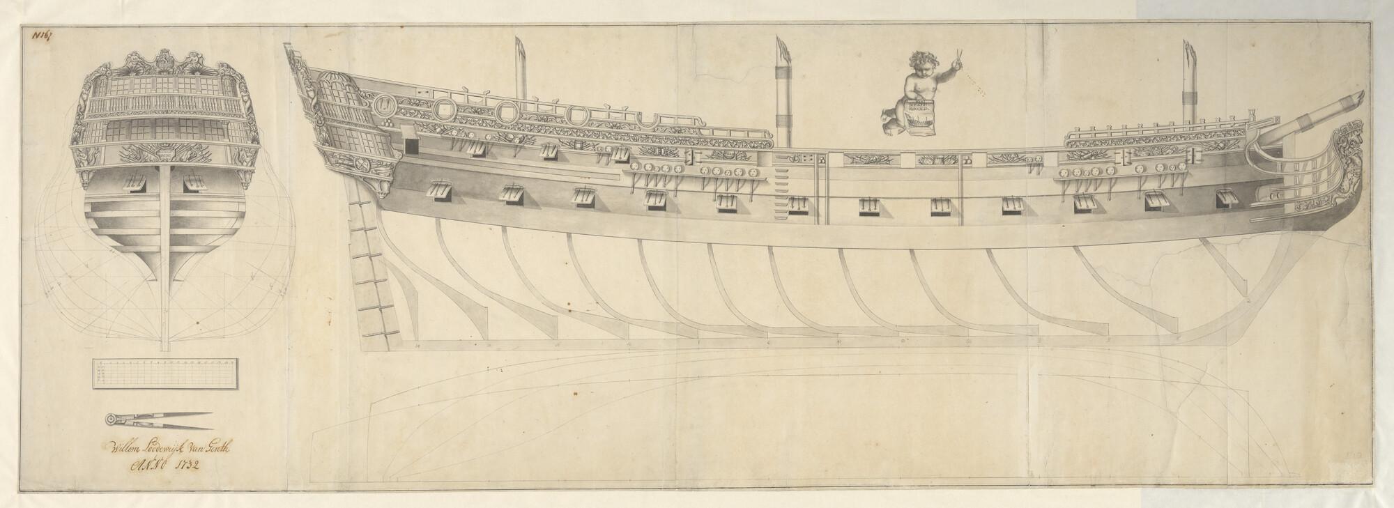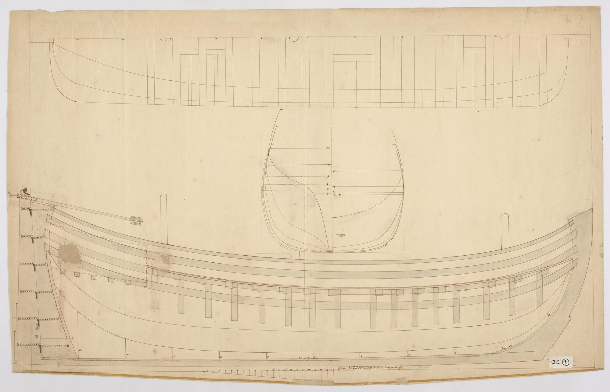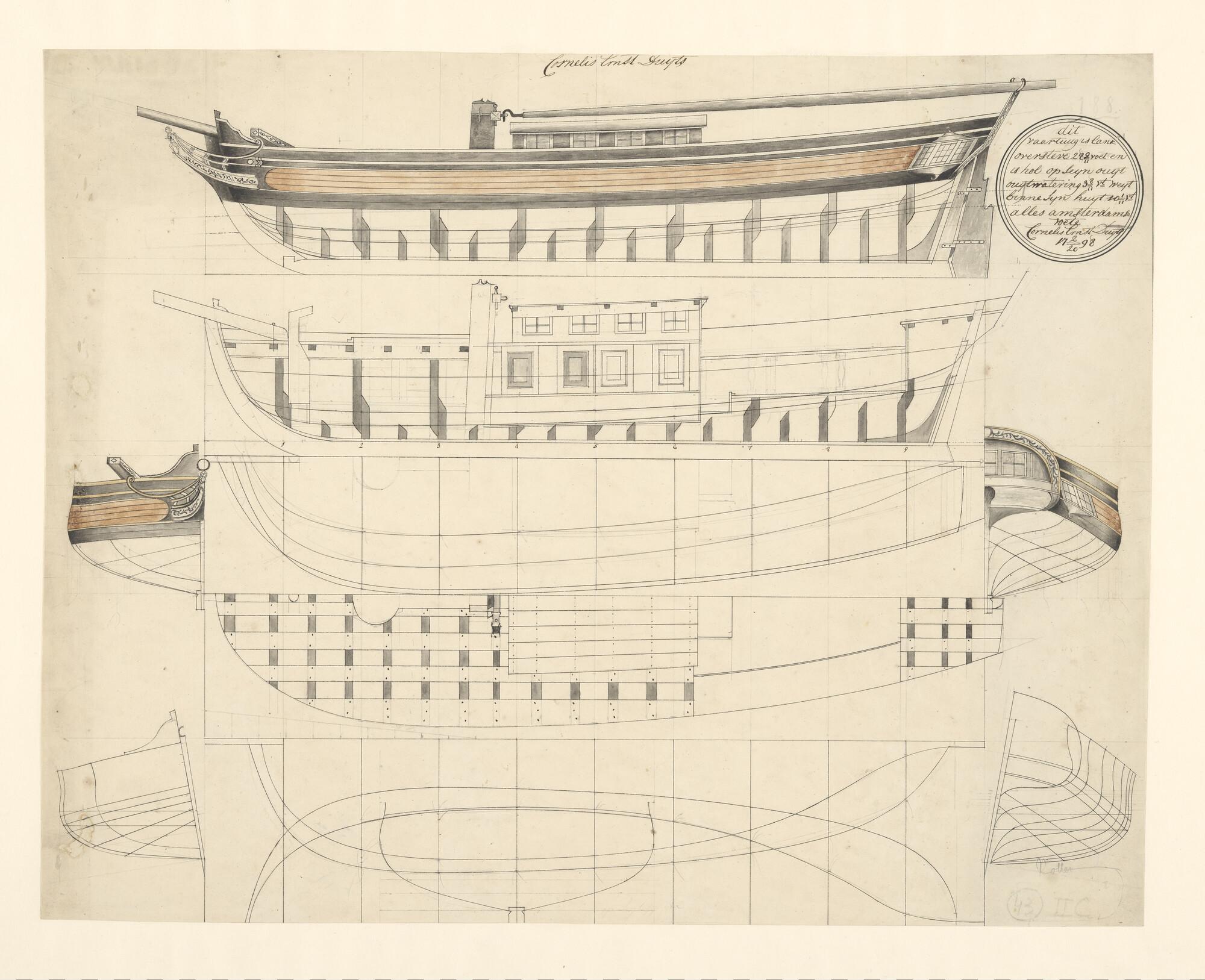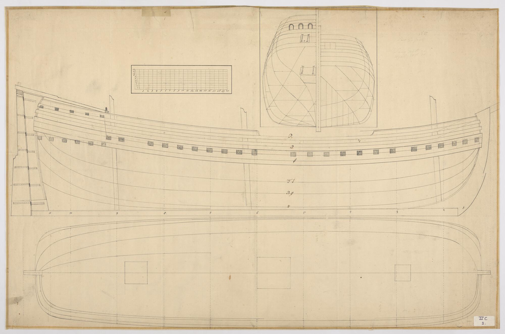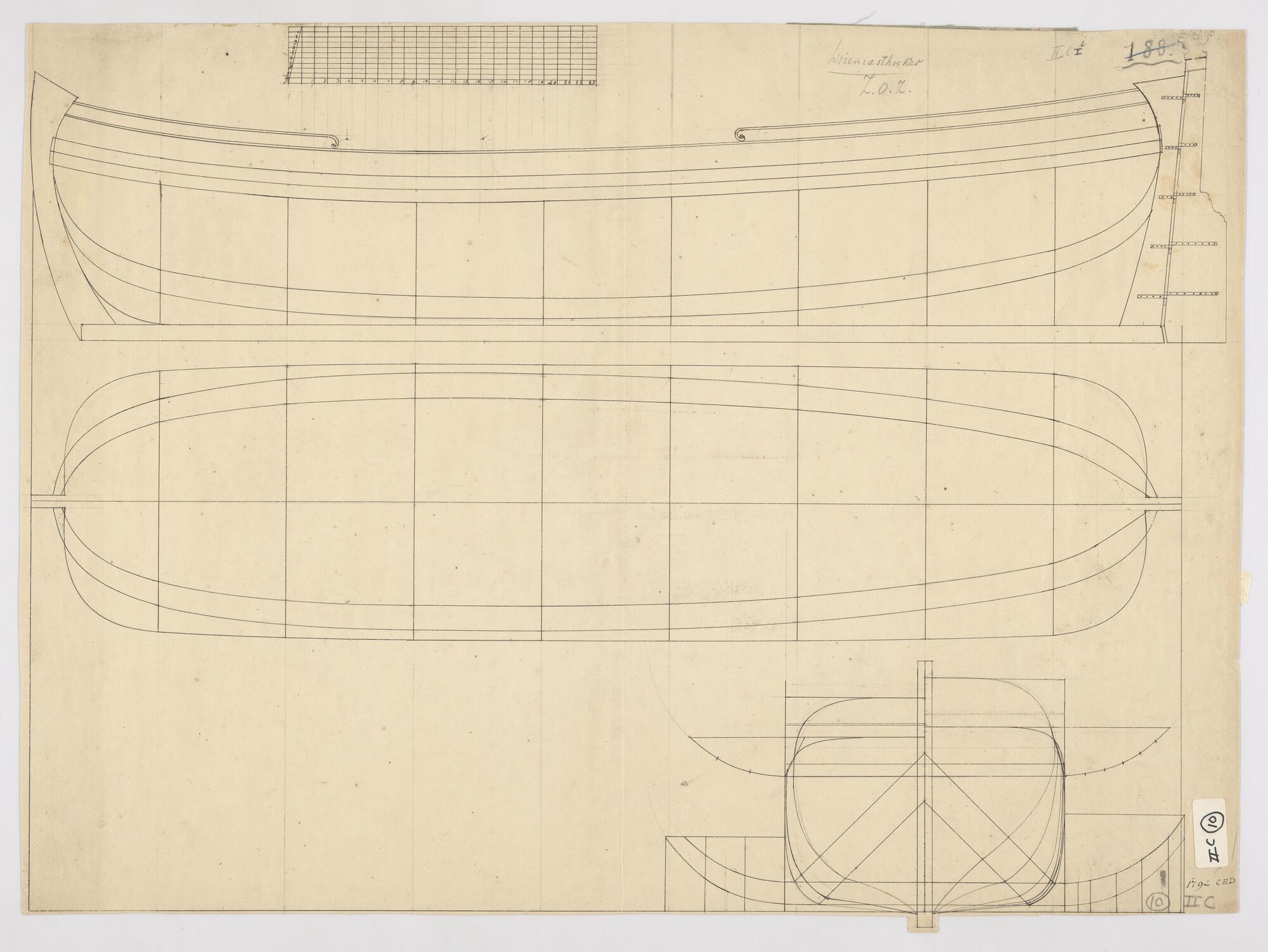 Lijnenplan van het linieschip De Hoop, 68 stukken