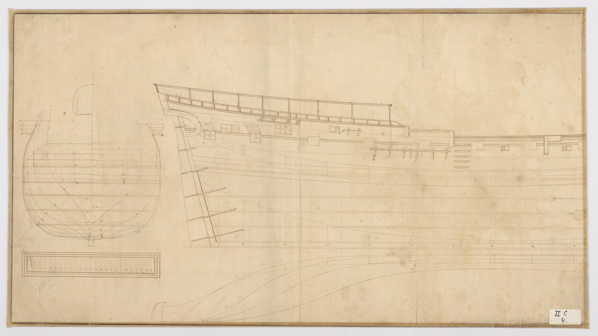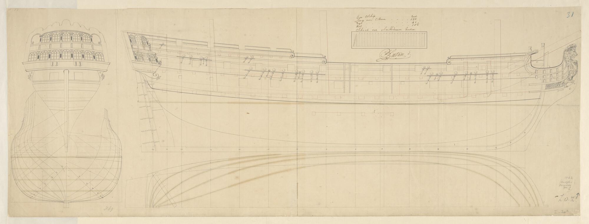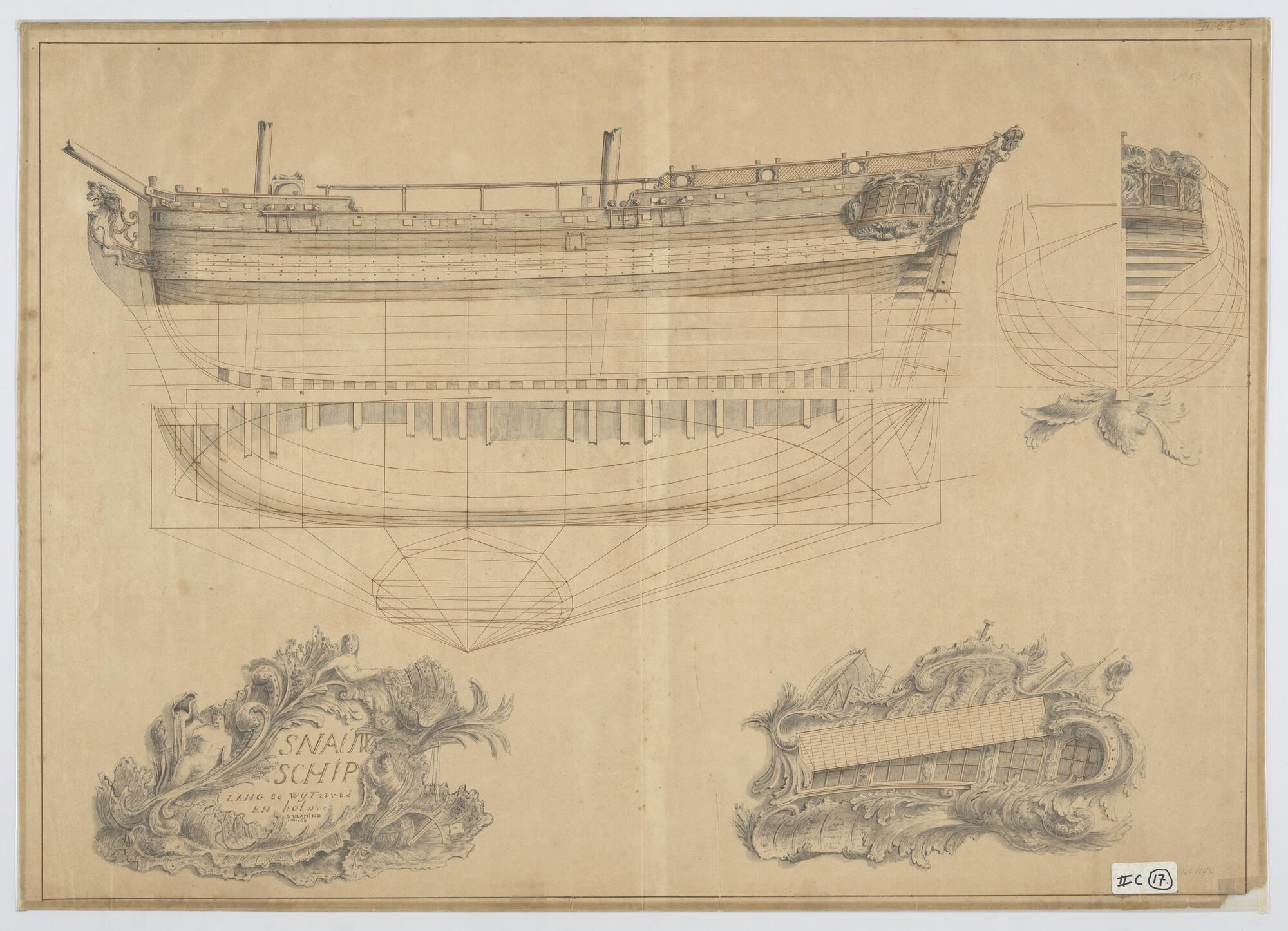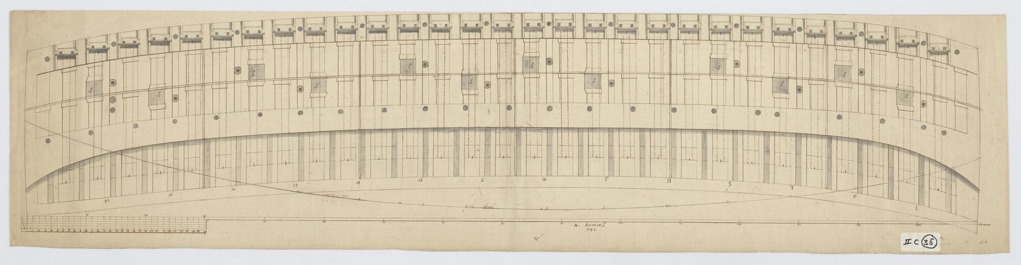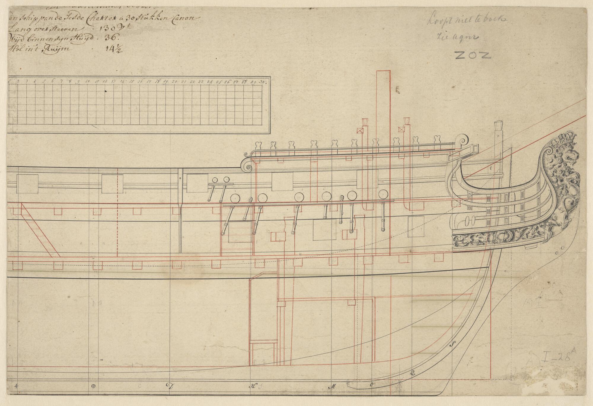 Lijnenplan van het linieschip De Hoop, 68 stukken