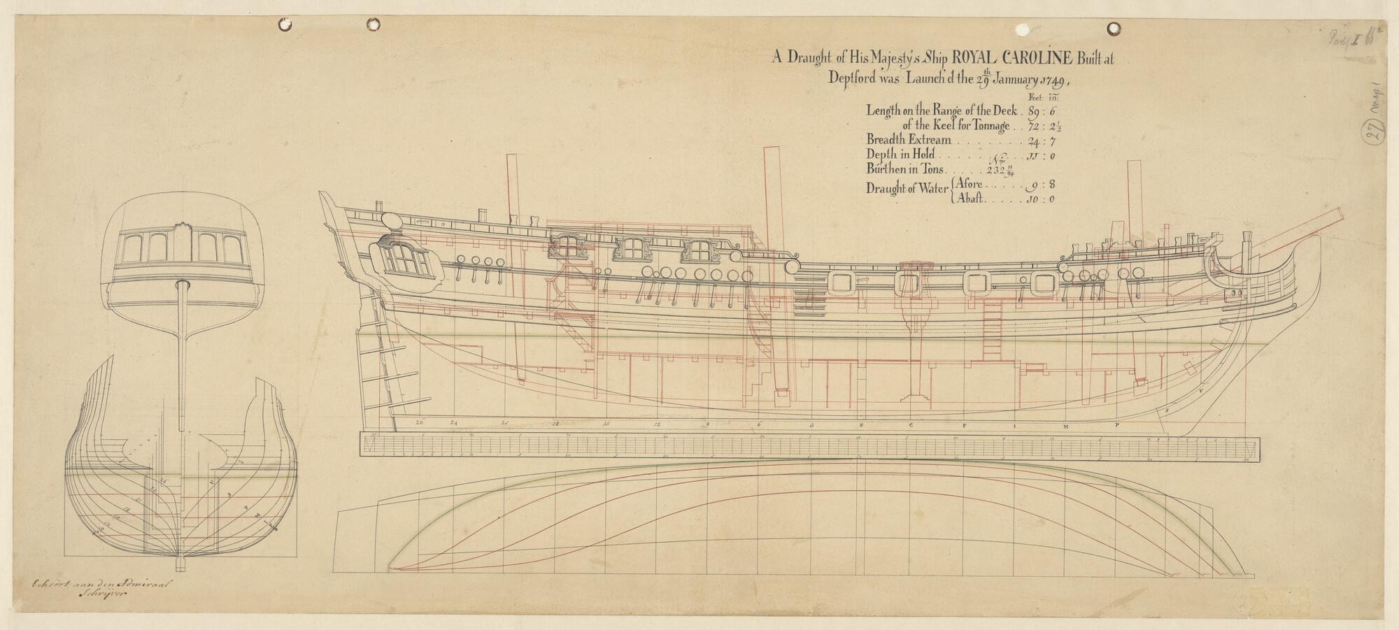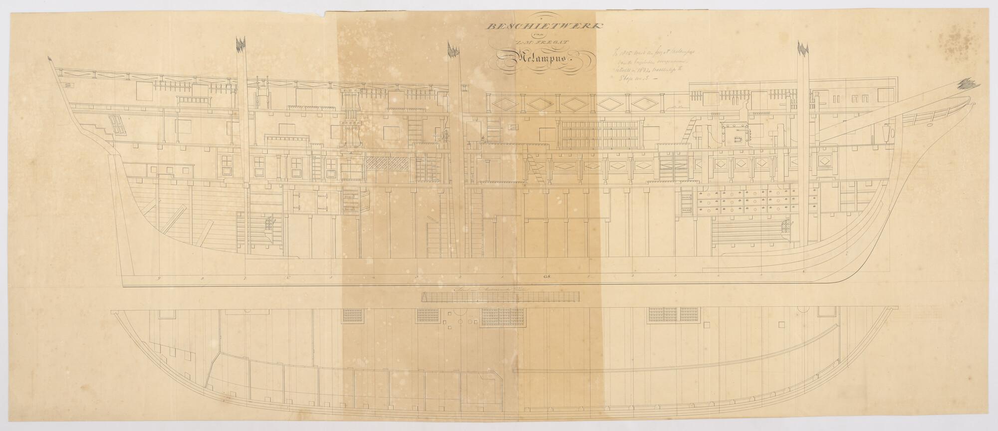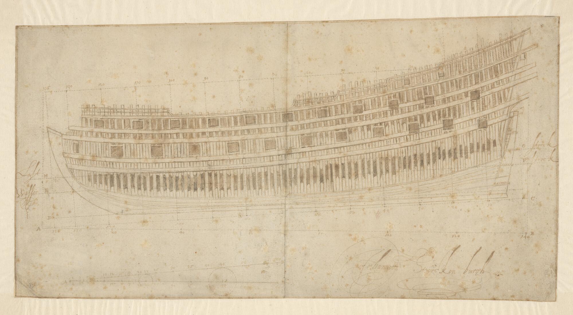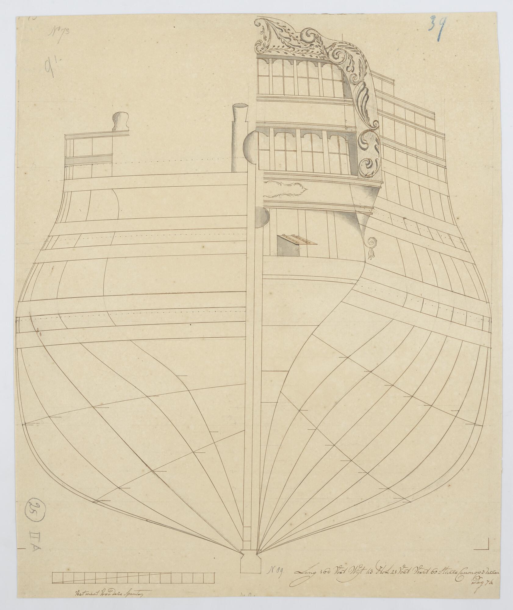 Lijnenplan van het linieschip De Hoop, 68 stukken