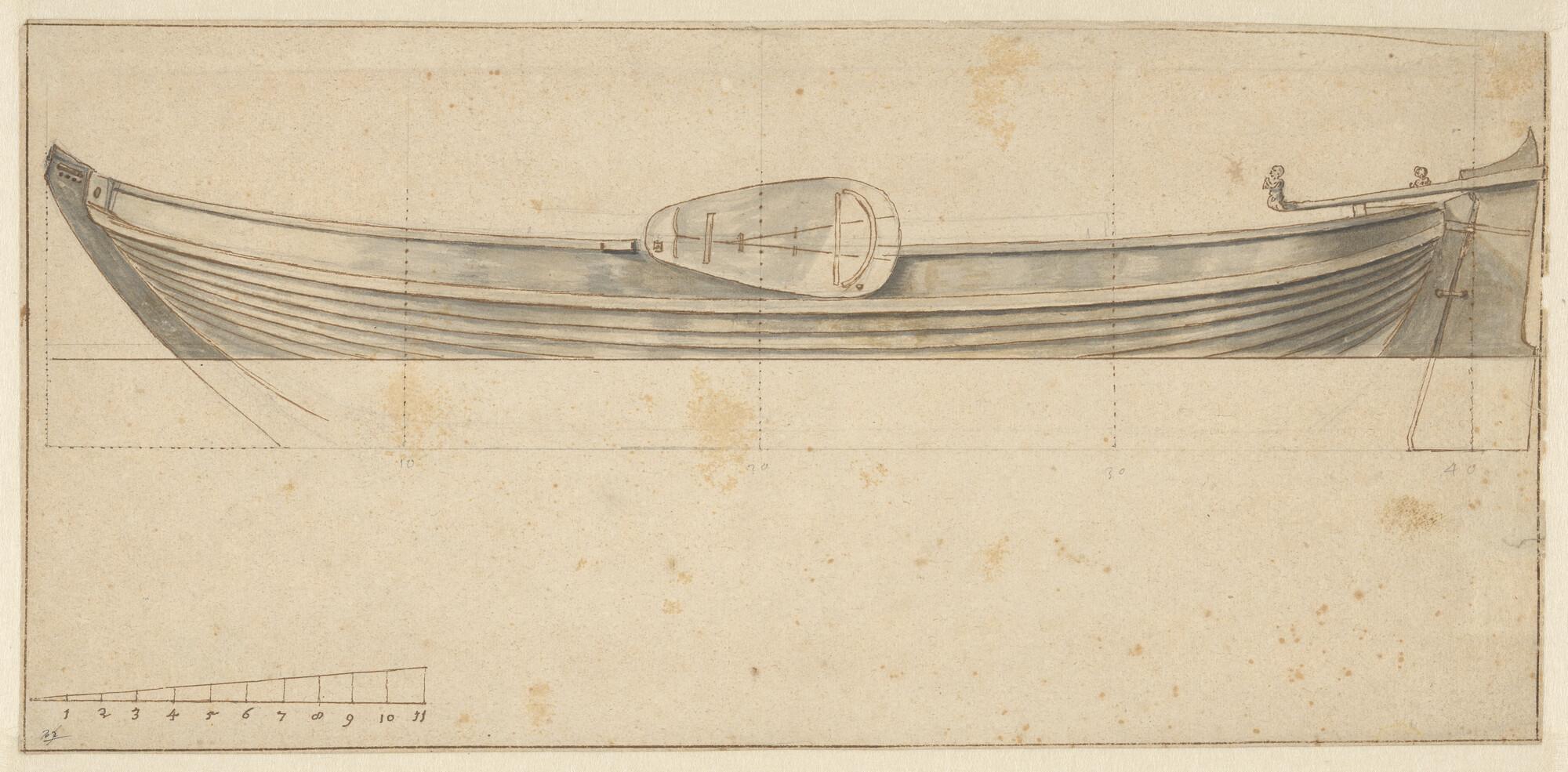 Algemeen plan van een barkas met 18 riemen voor schi...