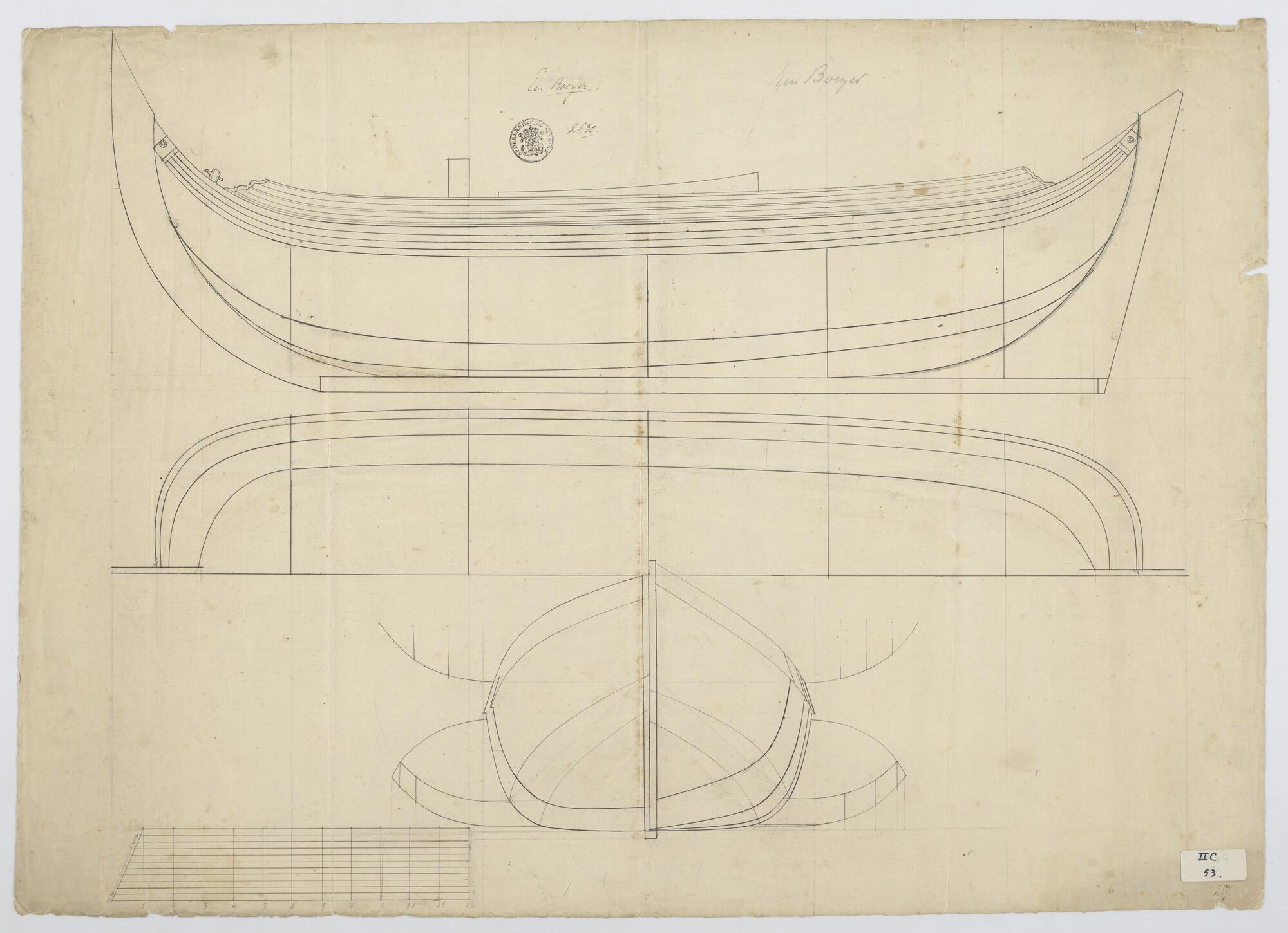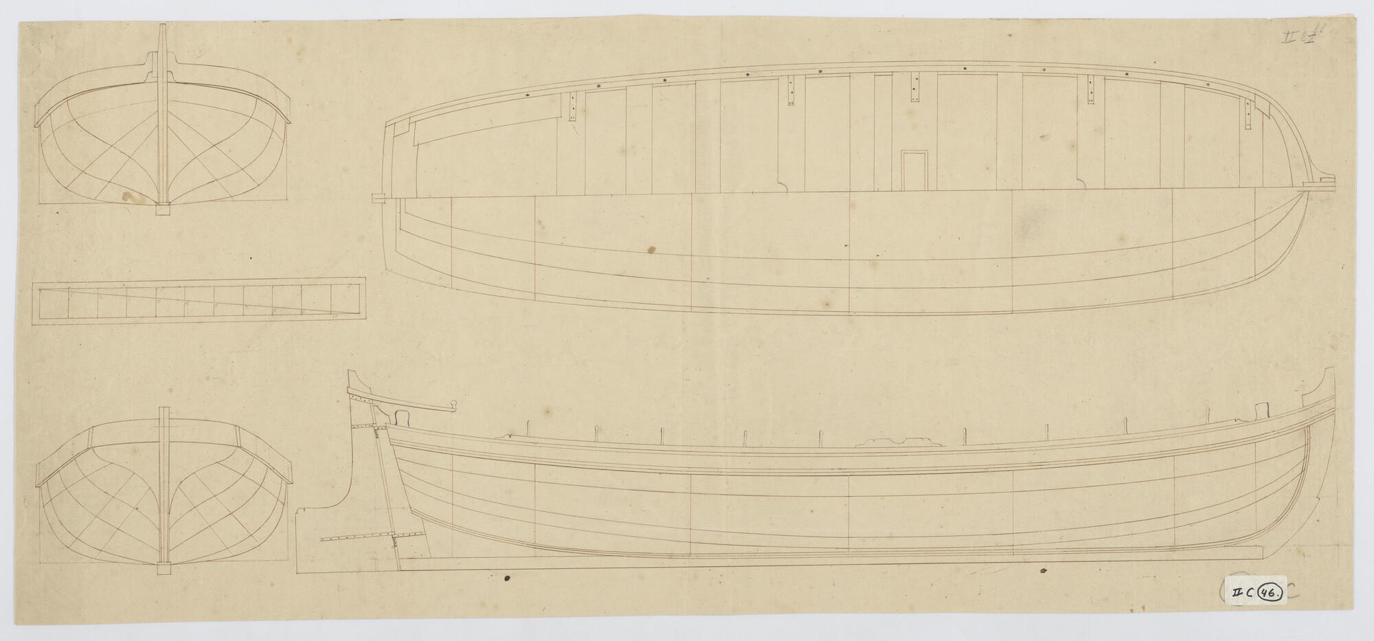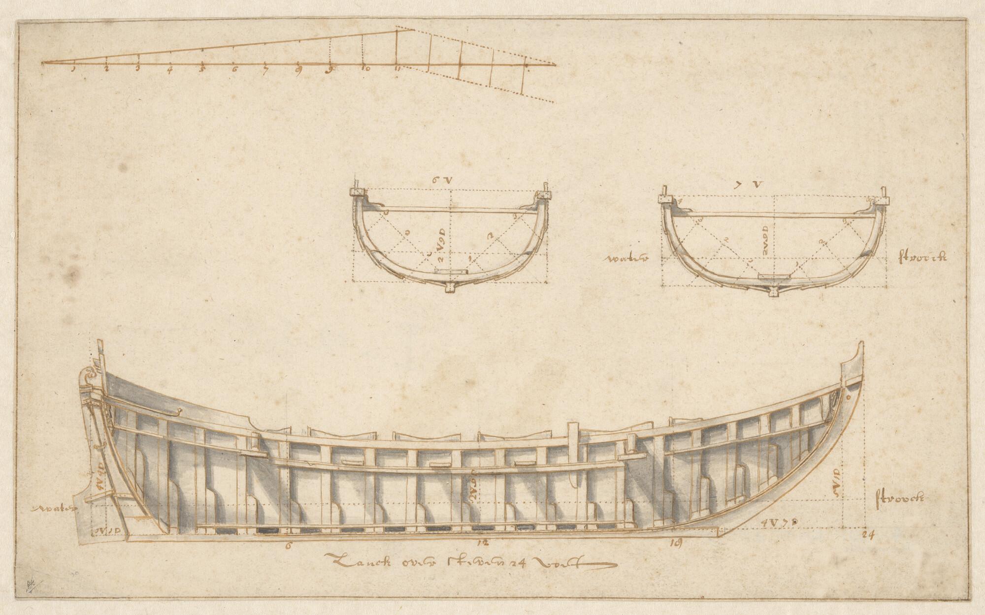 Algemeen plan van een barkas 18 riemen voor schip va...