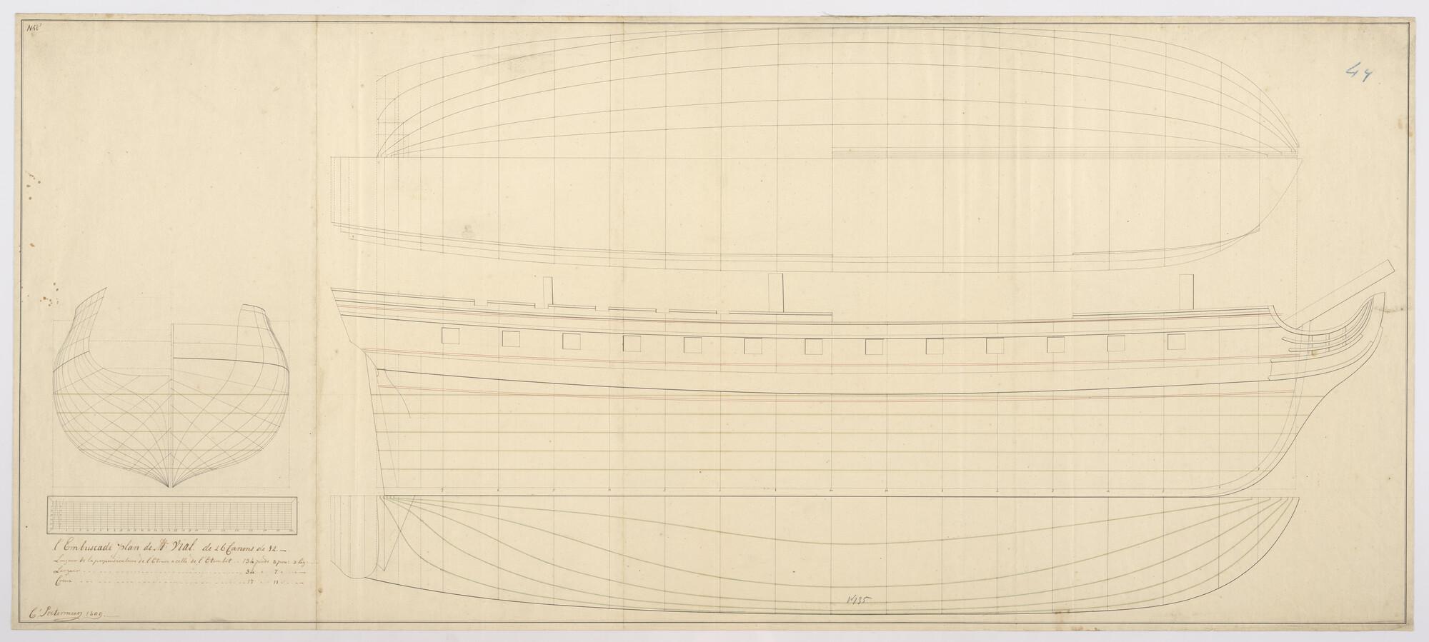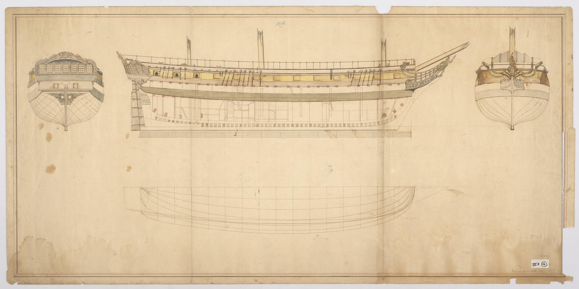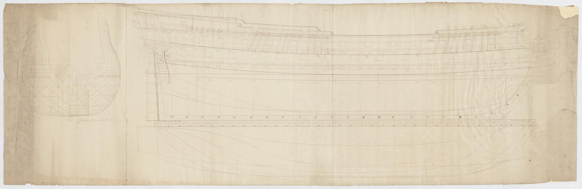 Lijnenplan van een Frans oorlogsschip van 100 stukken