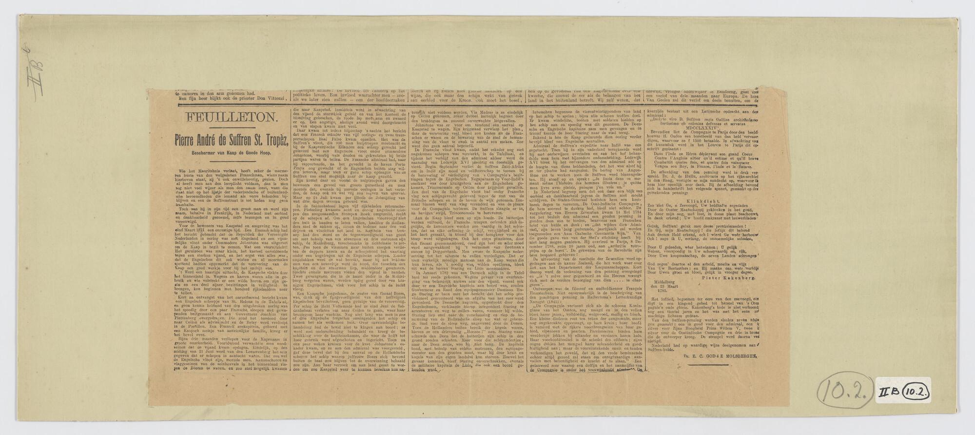 Krantenartikel over Admiraal Suffren's hulp aan Zuid...