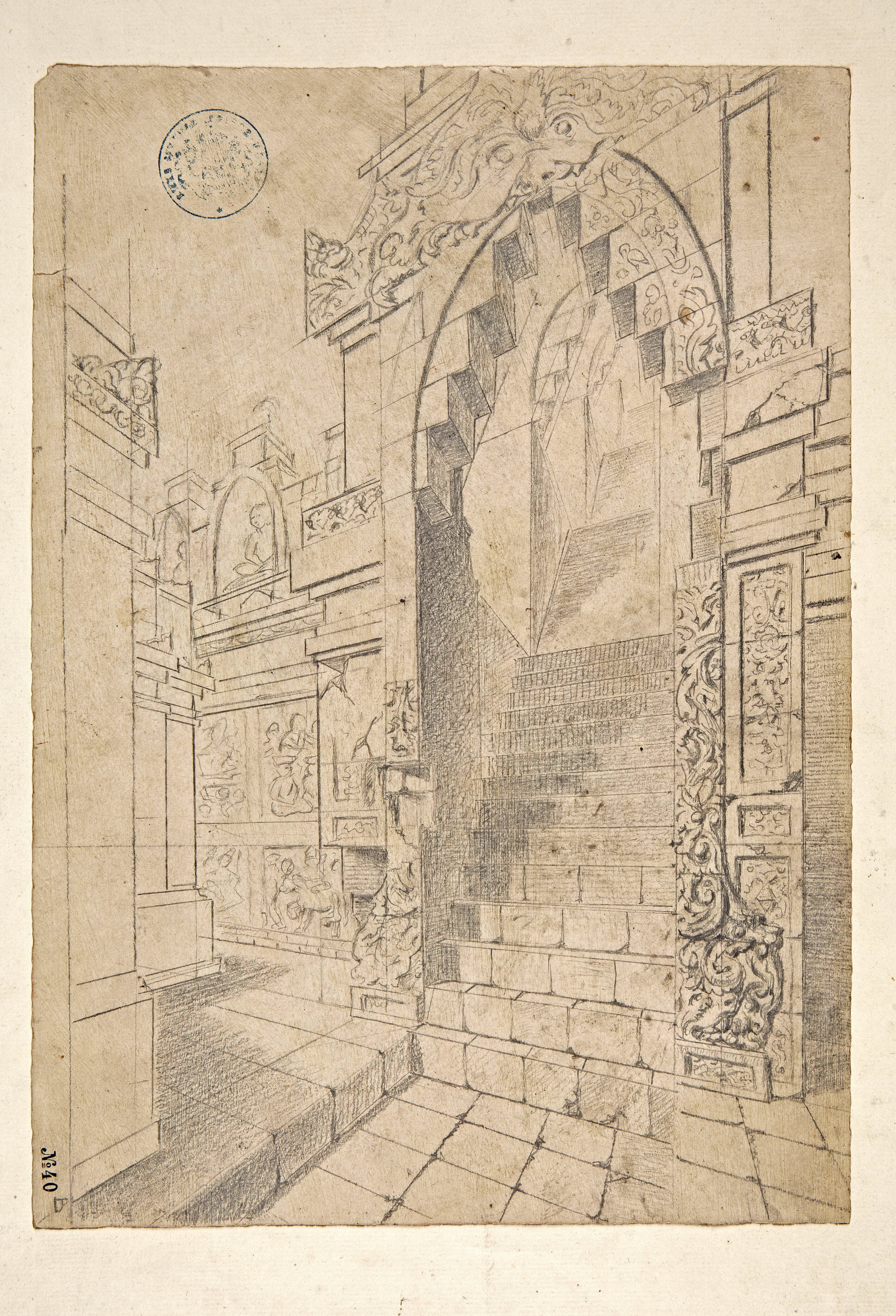 Tekening van de poort van de hoofdmuur van de eerste...