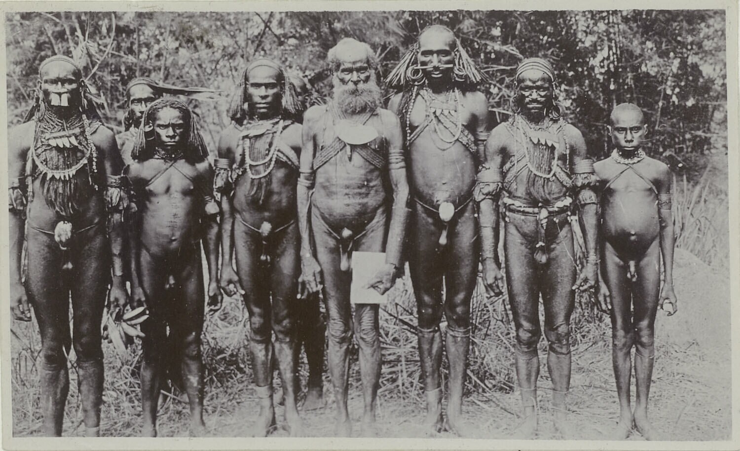 Groepsportret van mannen van de Marind-anim, bewoner...
