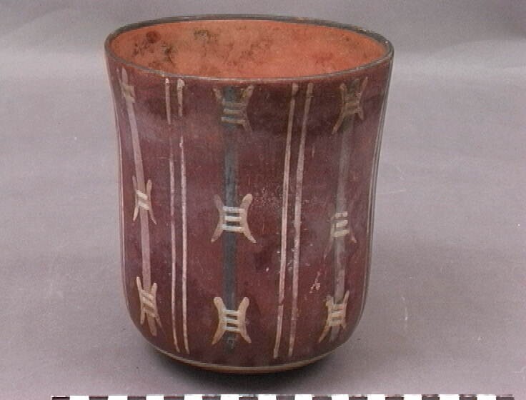 Beker met een afbeelding van ruggenwervels op stokken