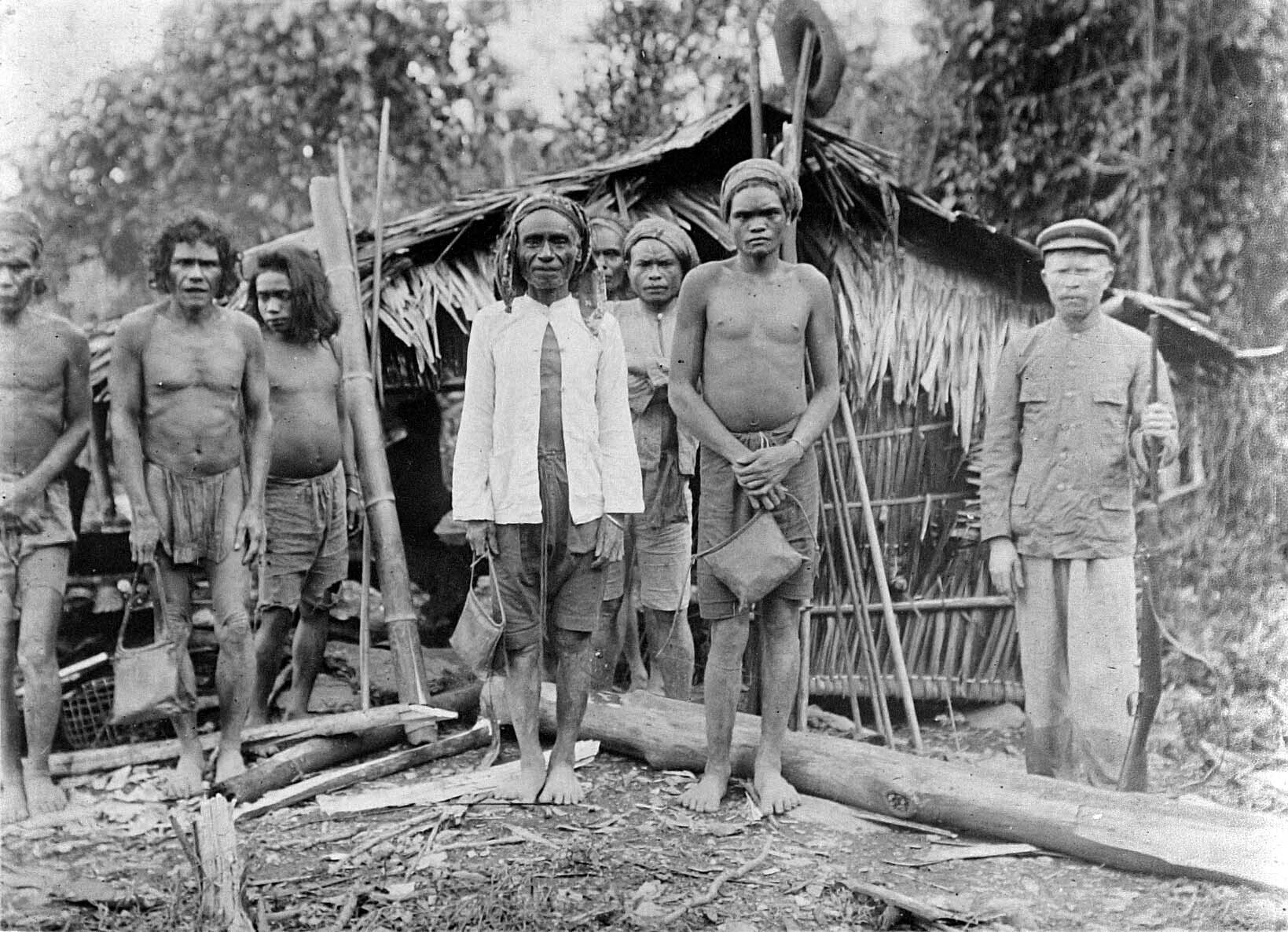 Groepsportret van inwoners van Koelawi op Midden-Cel...