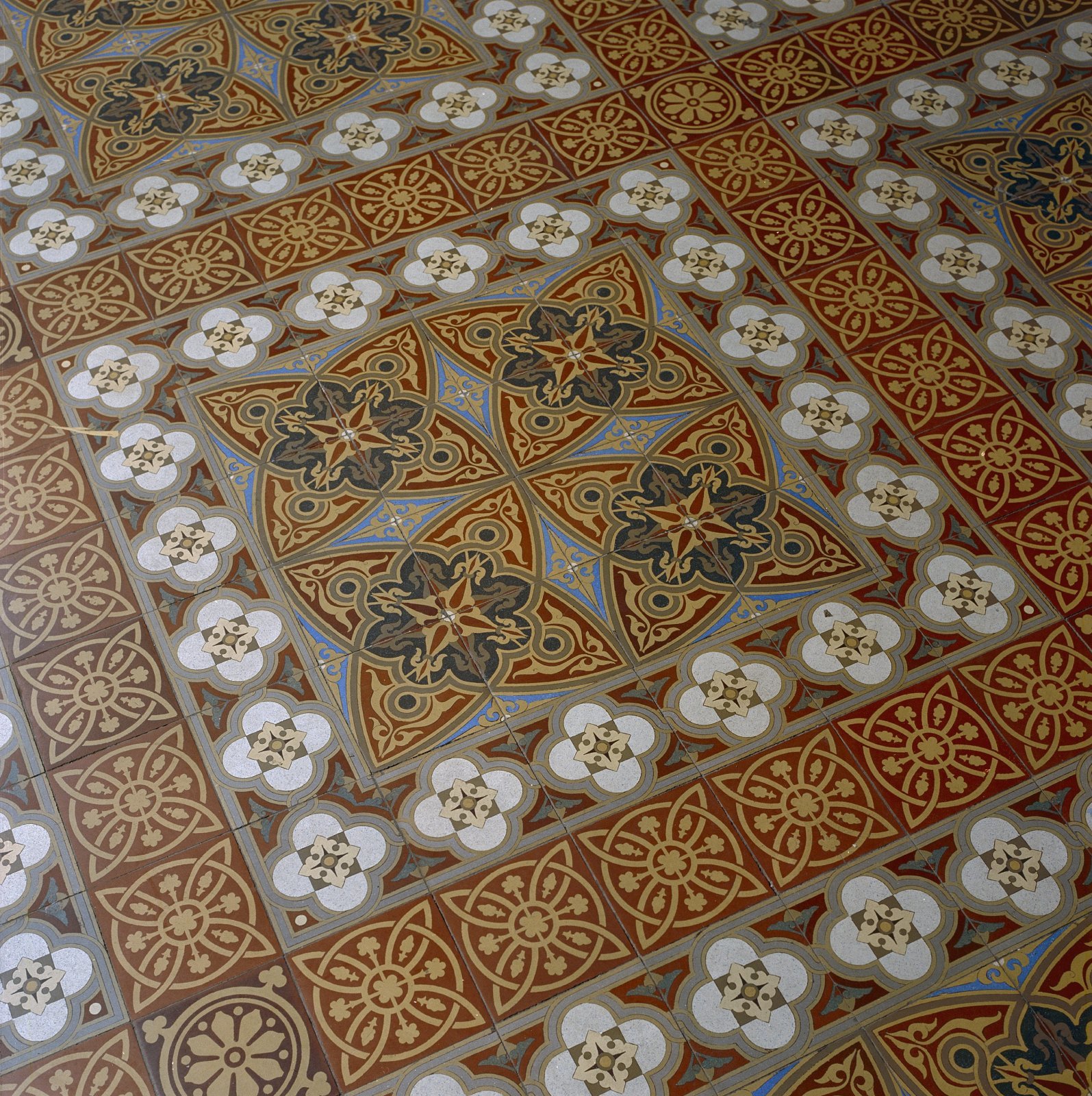 Interieur, detail ornamentale tegelvloer in de hal v...