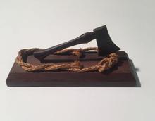 Beeld van donkere man met speer en pijp