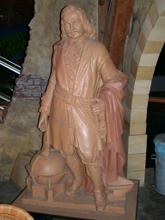 Houten beeld van een theemandendrager.