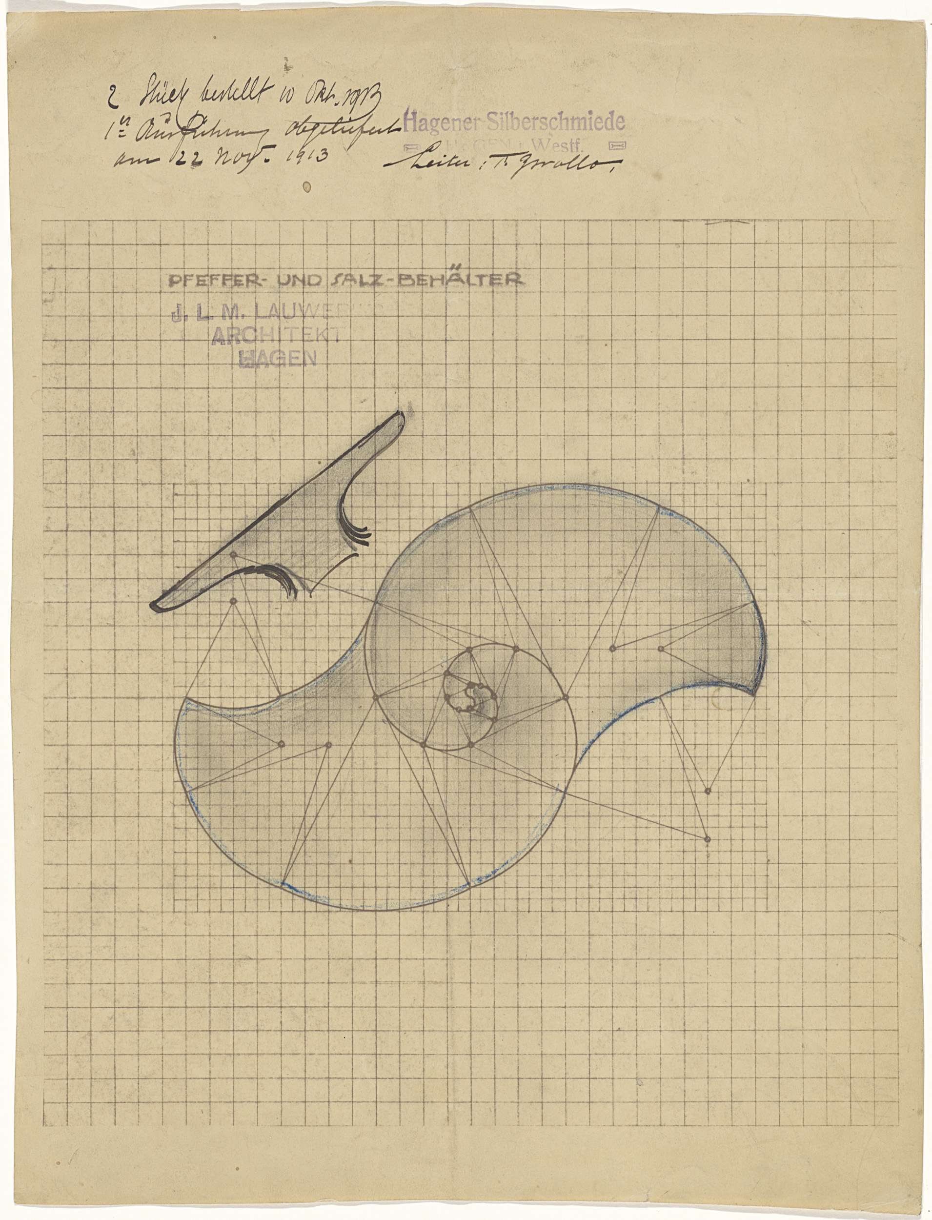 Ontwerp voor een zilveren tafelstuk