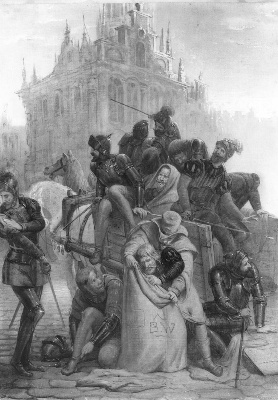 Anno 1304. Nicolaas van Cats aan een stormram vastge...