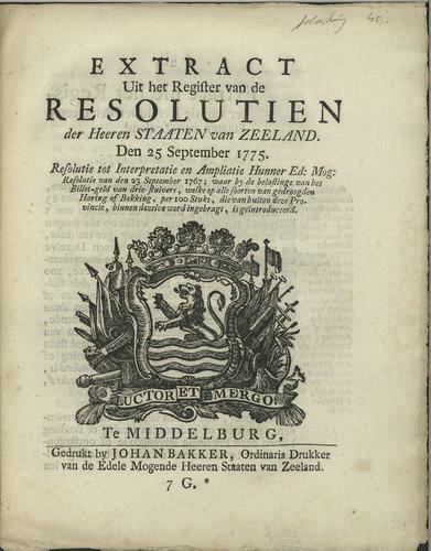 Plakkaat belasting gedroogde haring en bokking, 1775