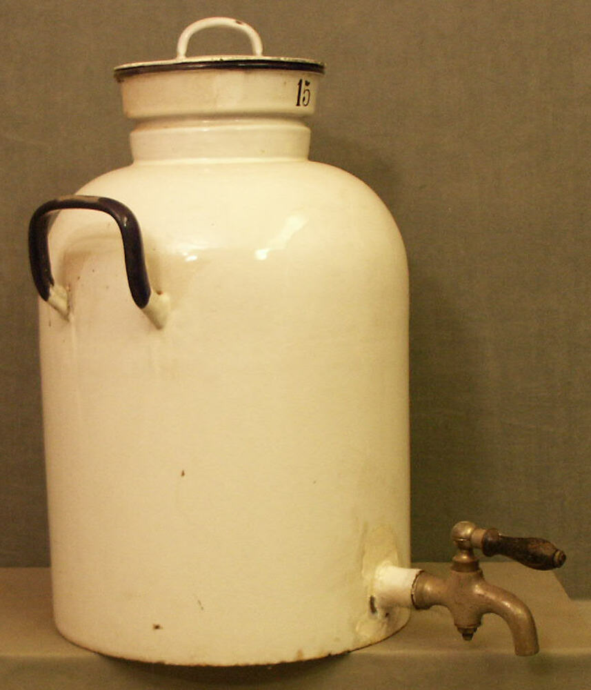 chocoladeketel van geëmailleerd ijzer met koperen kr...