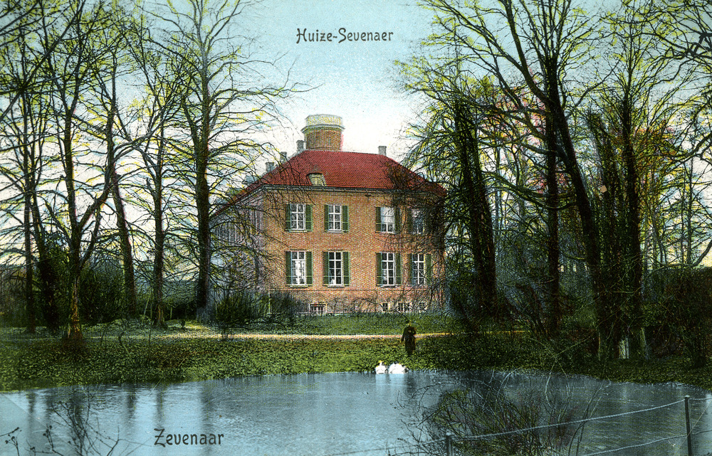 Ansichtkaart met op de beeldzijde Huis Sevenaer uitg...