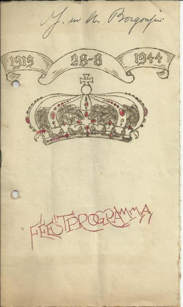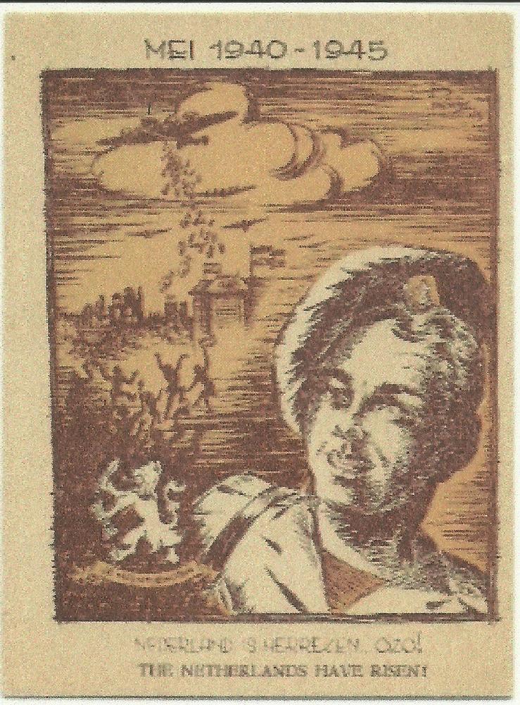 Foto van een (ansicht?)kaart "Wat ook vallm Oranje e...