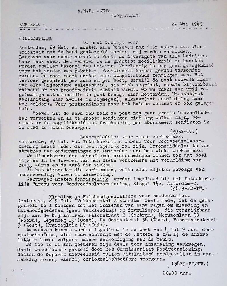 Algemeen Nederlandsch Persbureau, mededelingen, 17 m...