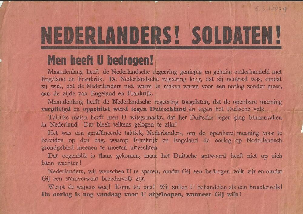 Nederlanders! Soldaten! Men heeft u bedrogen! (Duits...