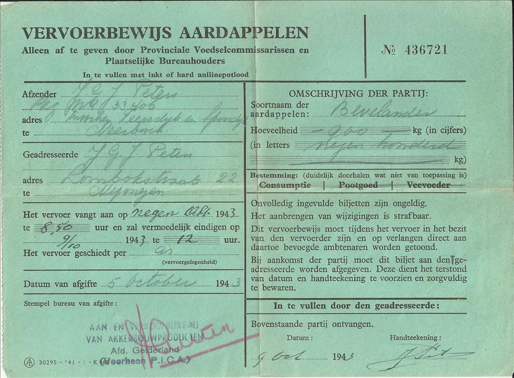 Vervoersbewijs Aardappelen, alleen af te geven door ...