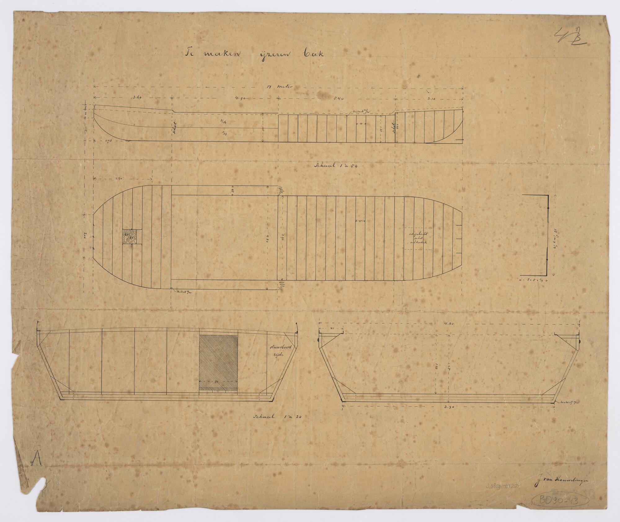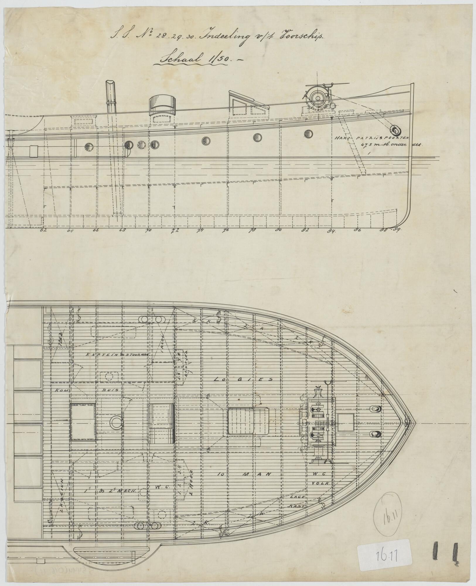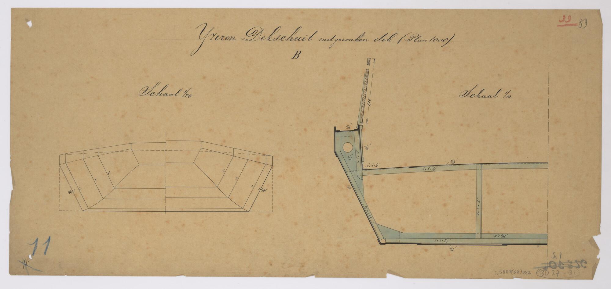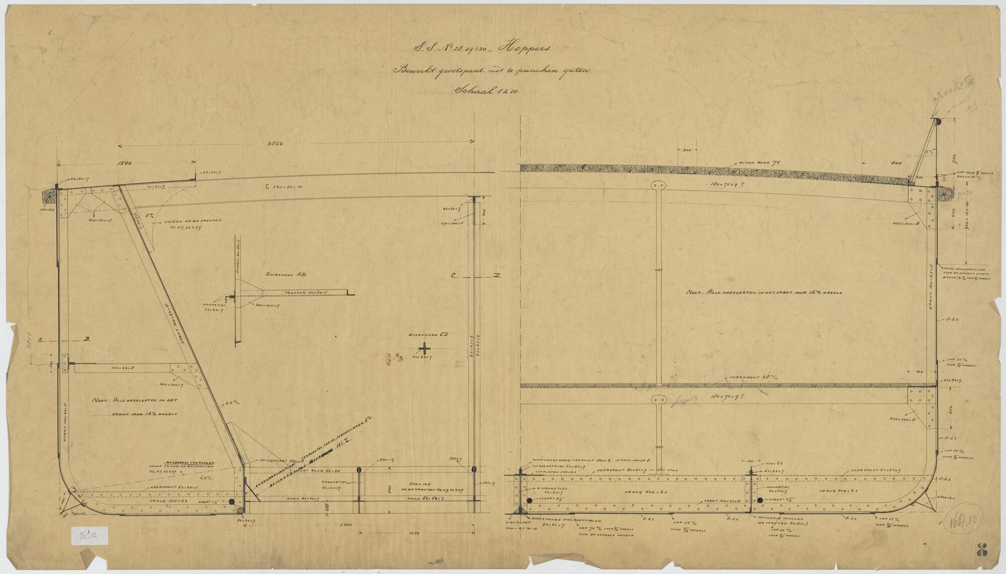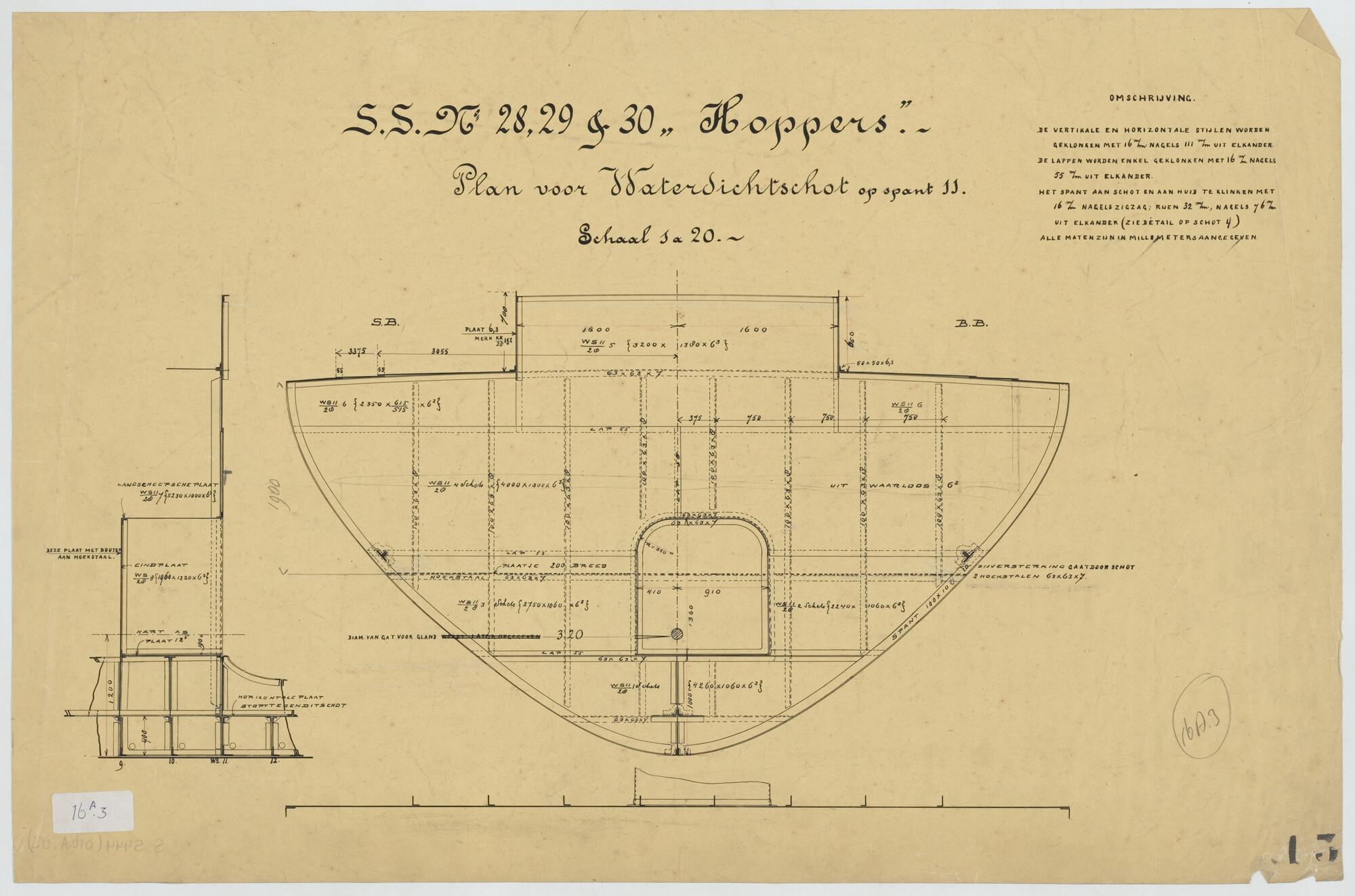 Plan voor waterdicht schot op spant 11 van een hoppe...