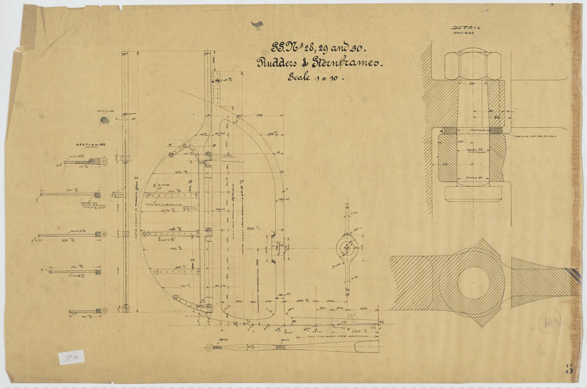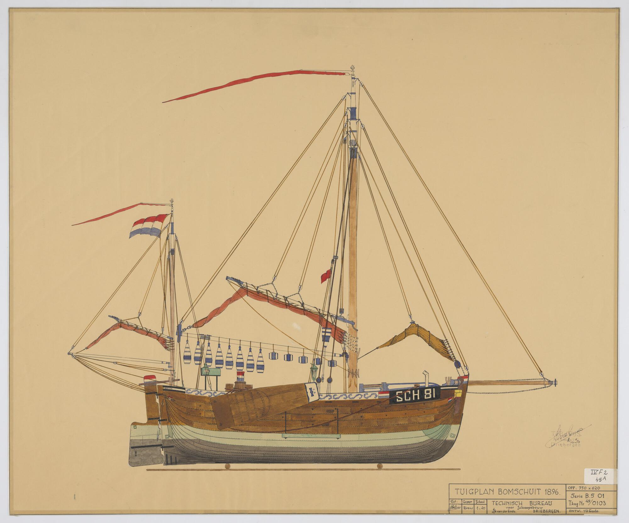 Plan voor waterdicht schot op spant 74 van een hoppe...