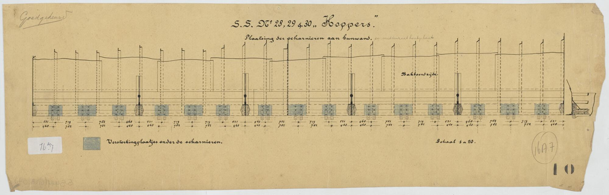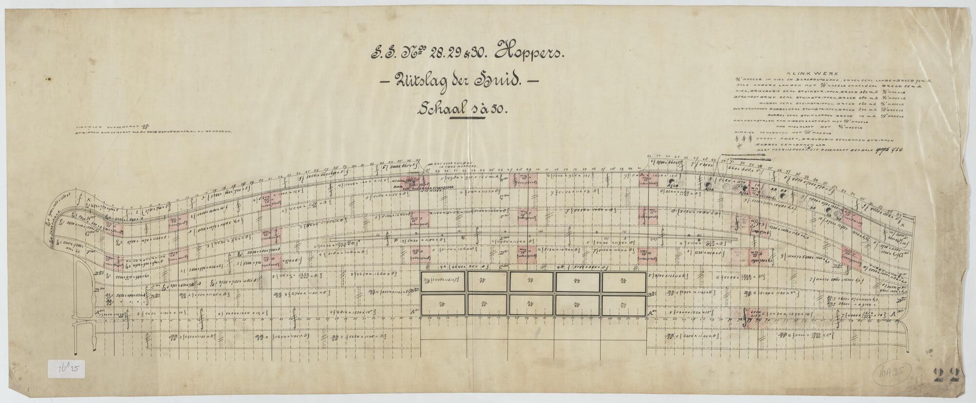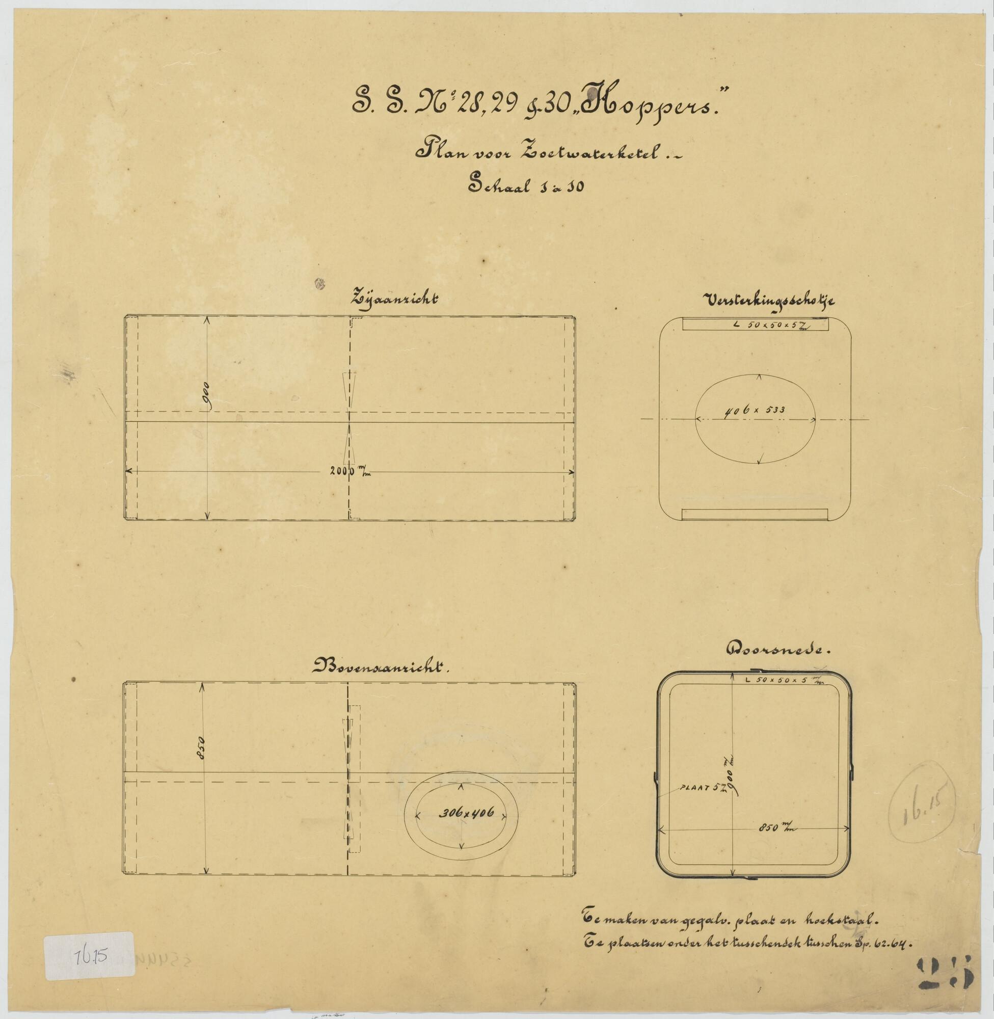 Plan voor de kolenbunkers van een hopperzuiger
