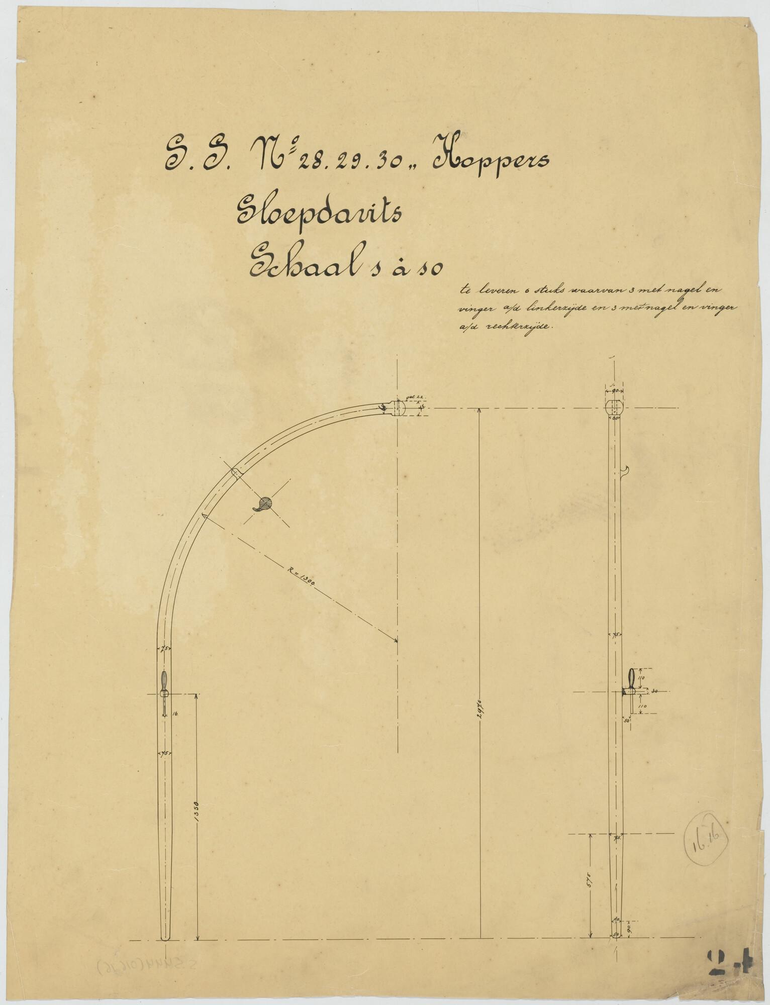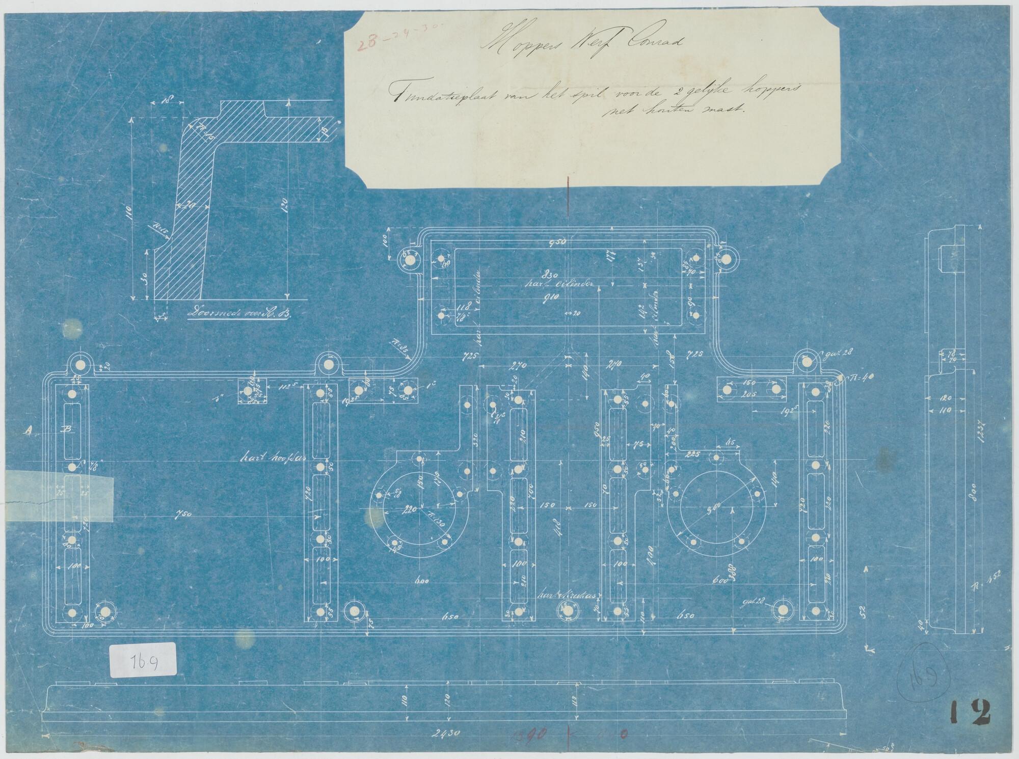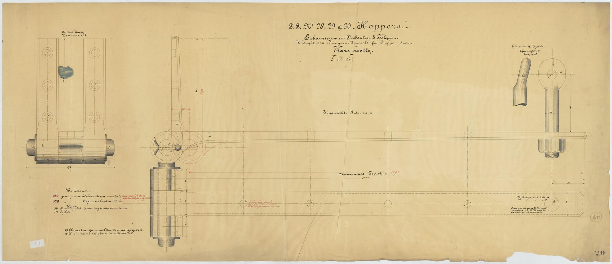 Plan voor de kolenbunkers van een hopperzuiger