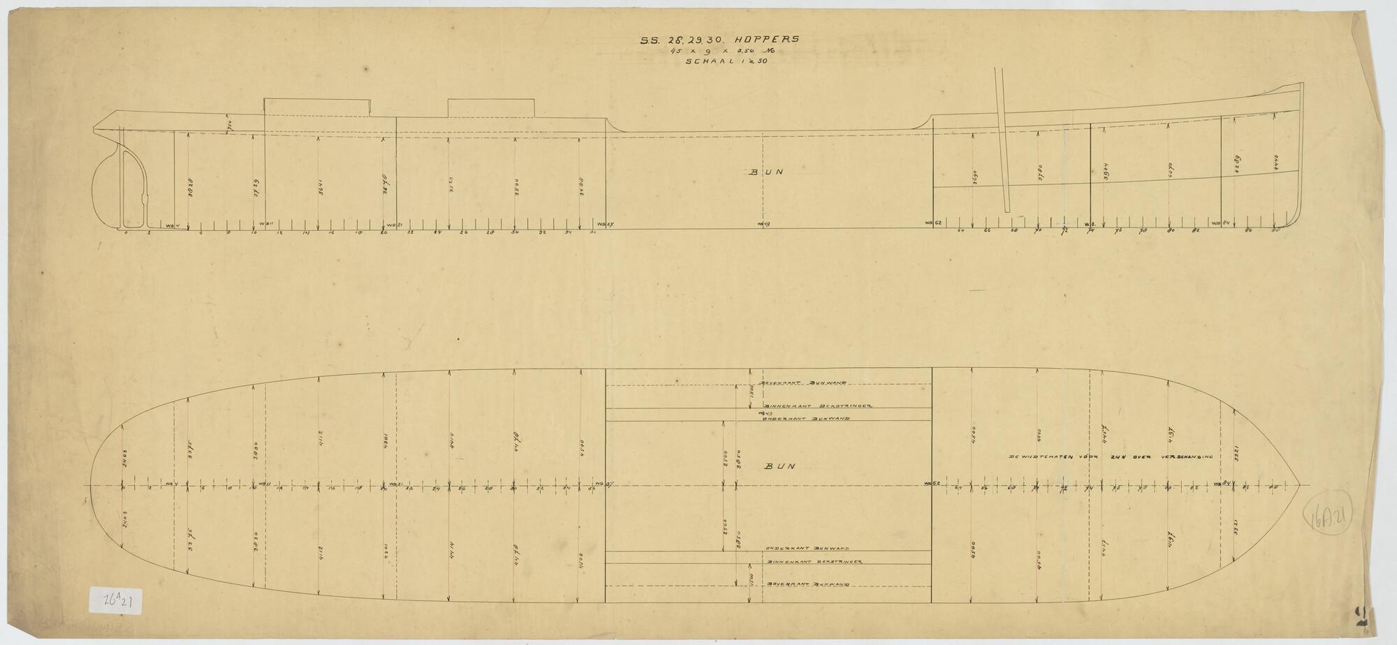Plan voor waterdicht schot op spant 21 van een hoppe...