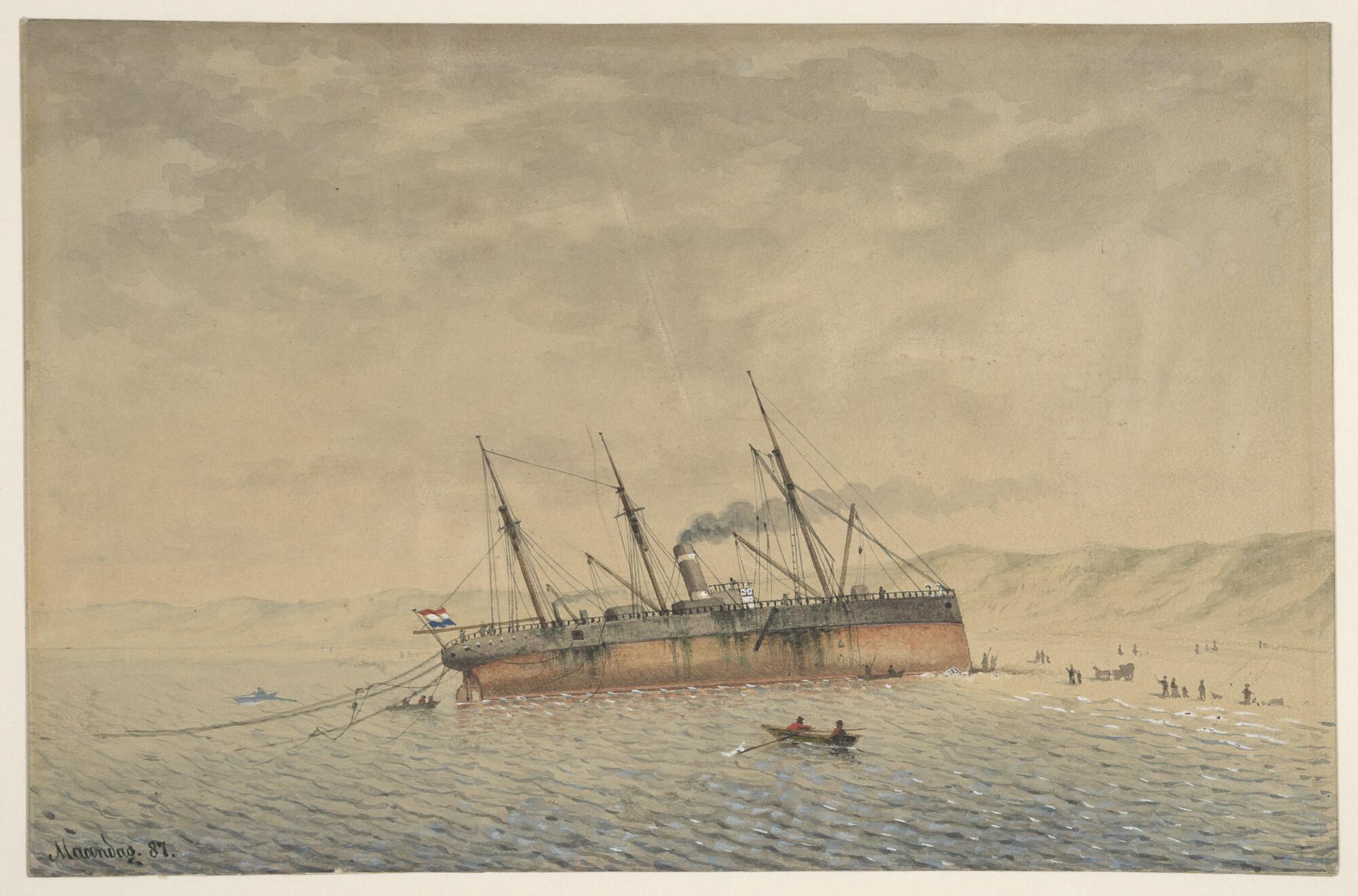 Het gestrande vrachtschip ss. Ulysses van de KNSM