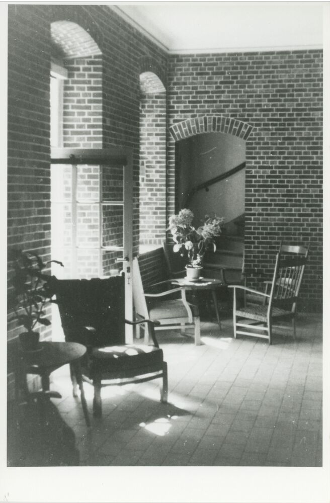 De hal van de Officiersmess met zithoekjes.