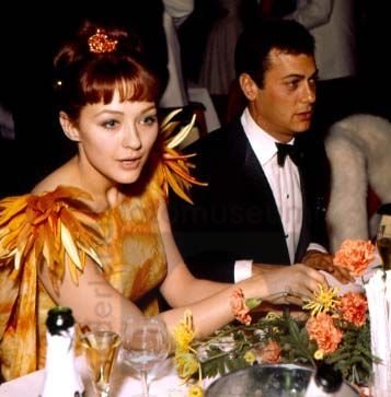 Tony Curtis aan tafel met Christine Kauffmann tijden...