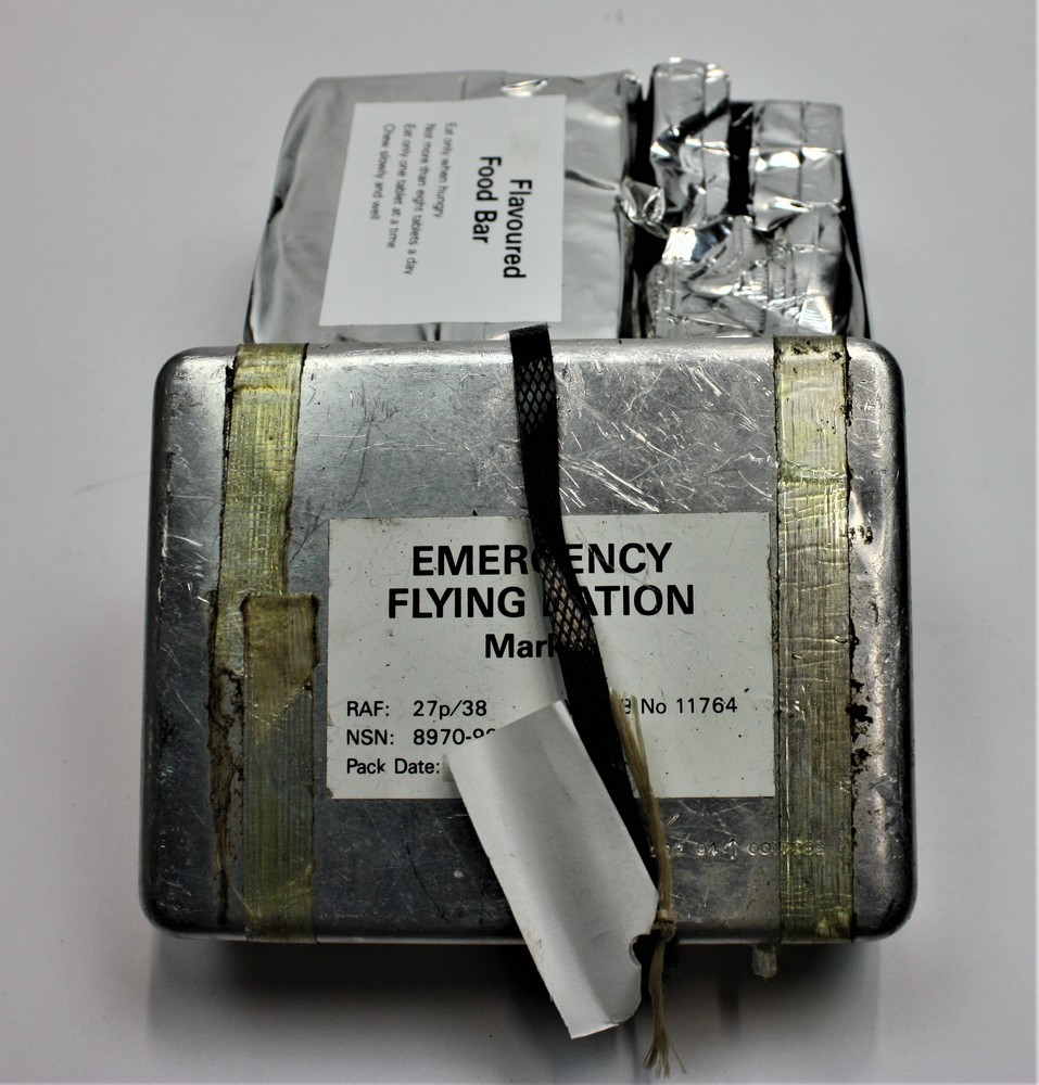 zakje thee met label, afgeworpen door R.A.F. als pro...