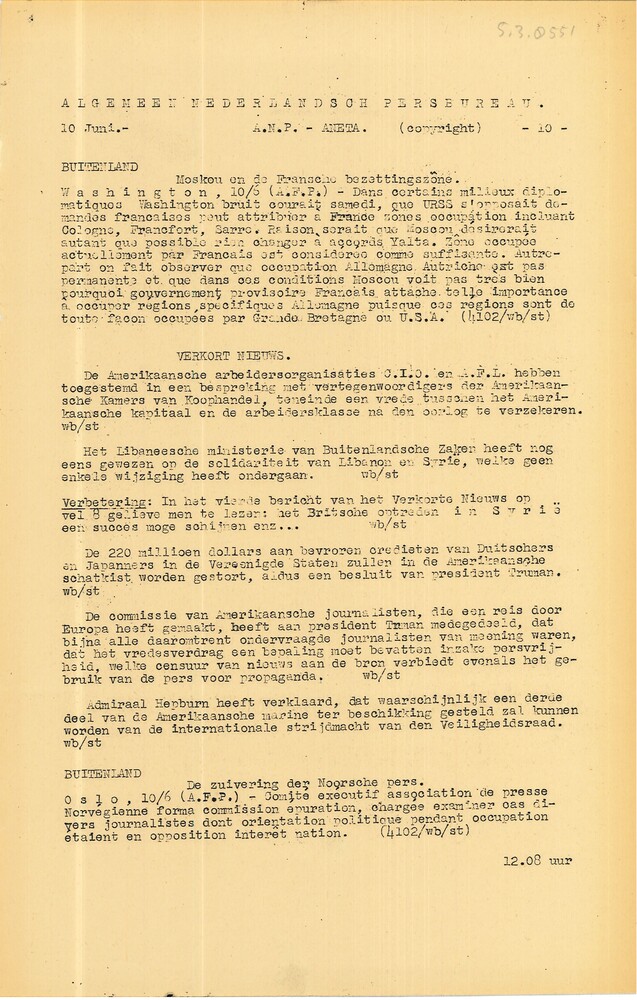 Vel: Algemeen Nederlandsch Persbureau, mededelingen,...