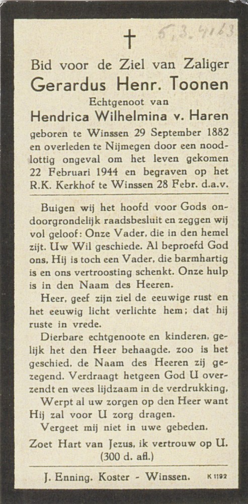Nijmegen, 22 februari 1944; Hertogstraat hoek Winter...