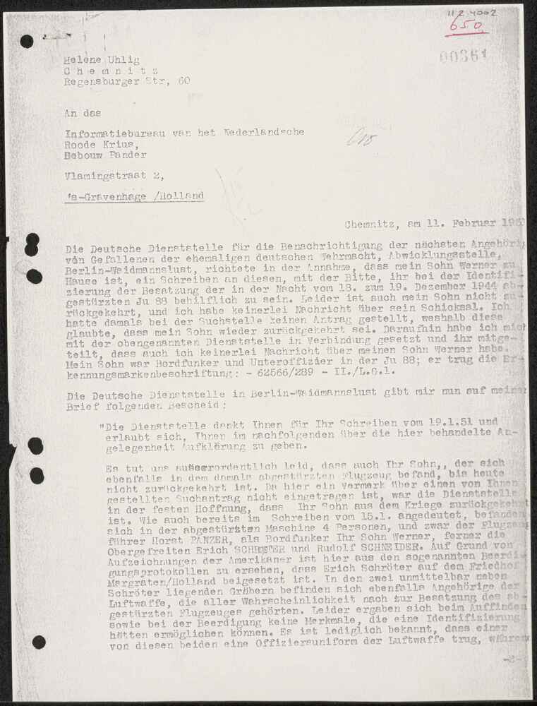 Brief van Mevr. Helen Uhlig, Chemnitz, 11 februari 1...