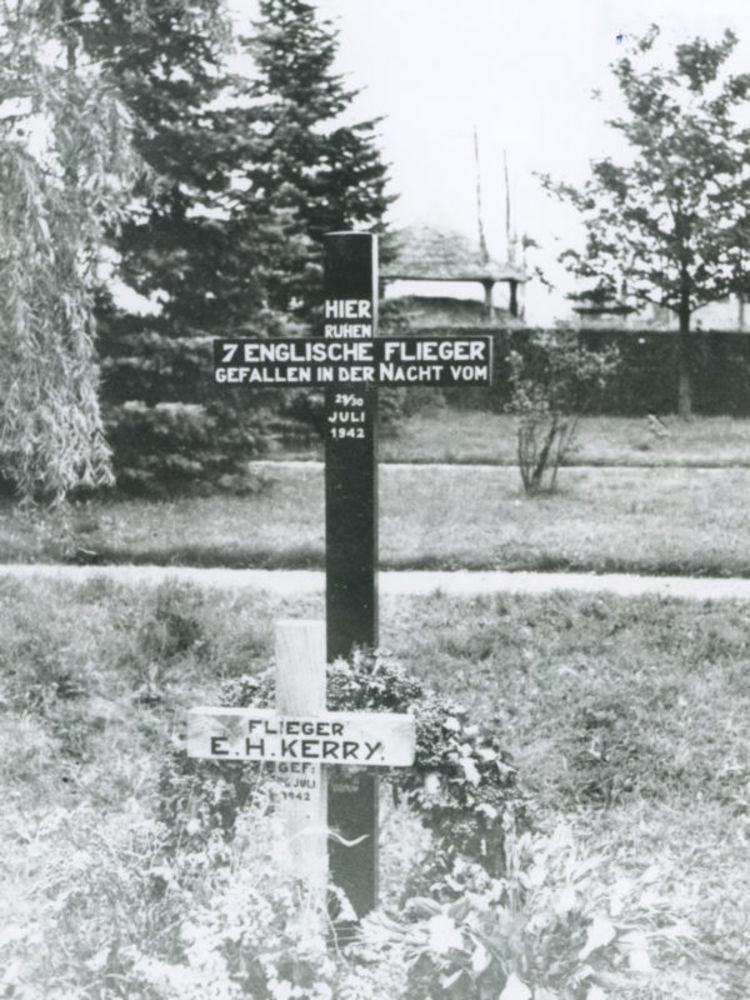 Foto van twee grafkruisen. Een zwart grafkruis op de...