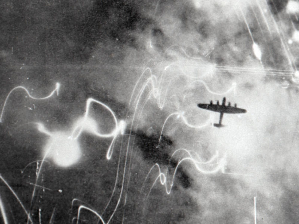 Foto van binnenkant wrak van een bommenwerper, patro...
