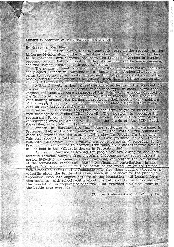 Arnhem in oorlogstijd wil netwerk van monumenten
