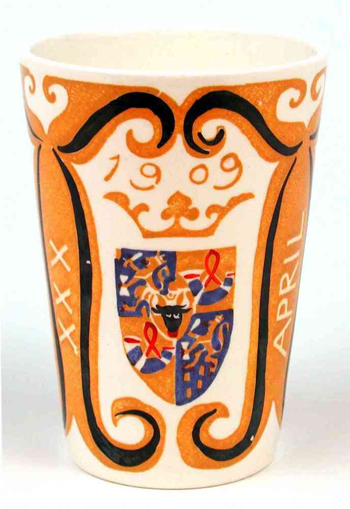 2 herinneringsbekers van keramiek met afbeelding van...
