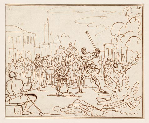 Telemachus poogt de kampvechters in ´t perk te scheyden