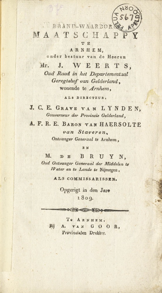Brand-Waarborg Maatschappij te Arnhem : ... opgerigt...