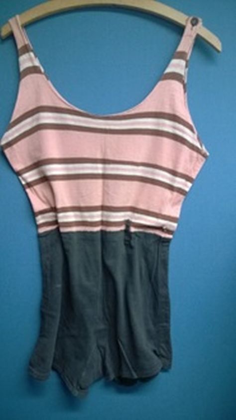 Katoenen tricot badpak, bovenstuk dwarsgestreept in ...