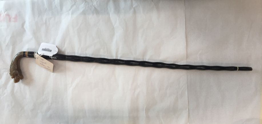 Wandelstok met gesneden drakenkop uit been of hoorn