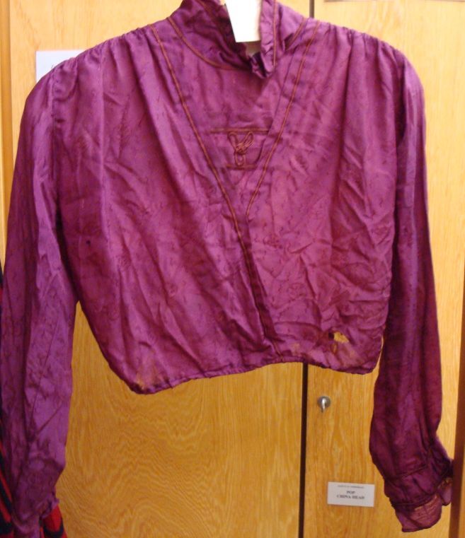 Korte paarse blouse van dunne zijde met ingeweven mo...