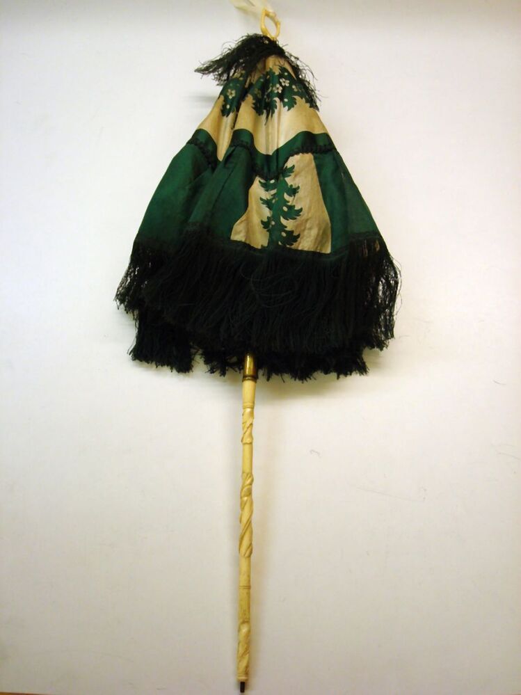 Groen en ivoorkleurige gestreepte zijden parasol, iv...
