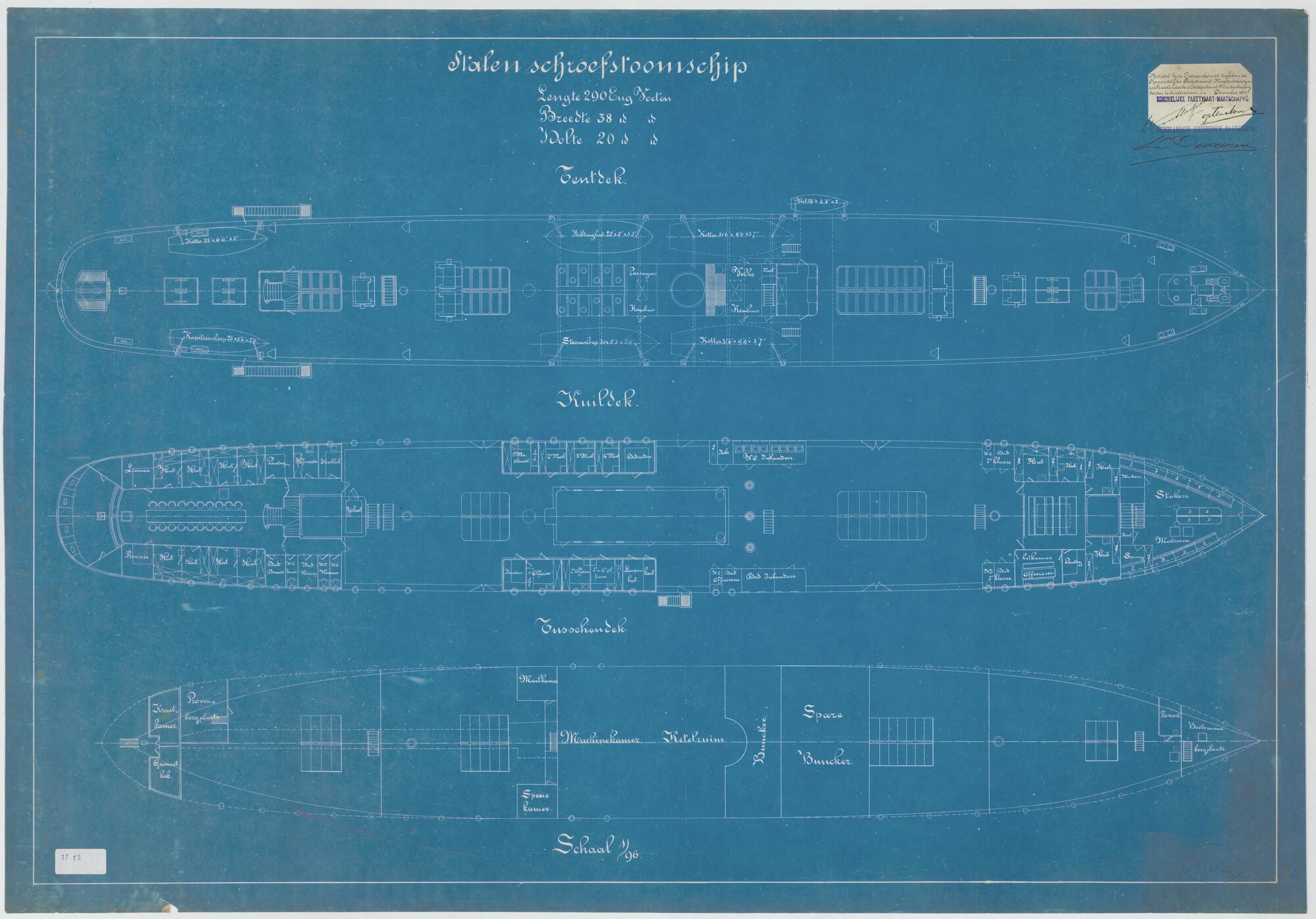 Dekplannen van het vracht- en passagiersschip ss. Va...