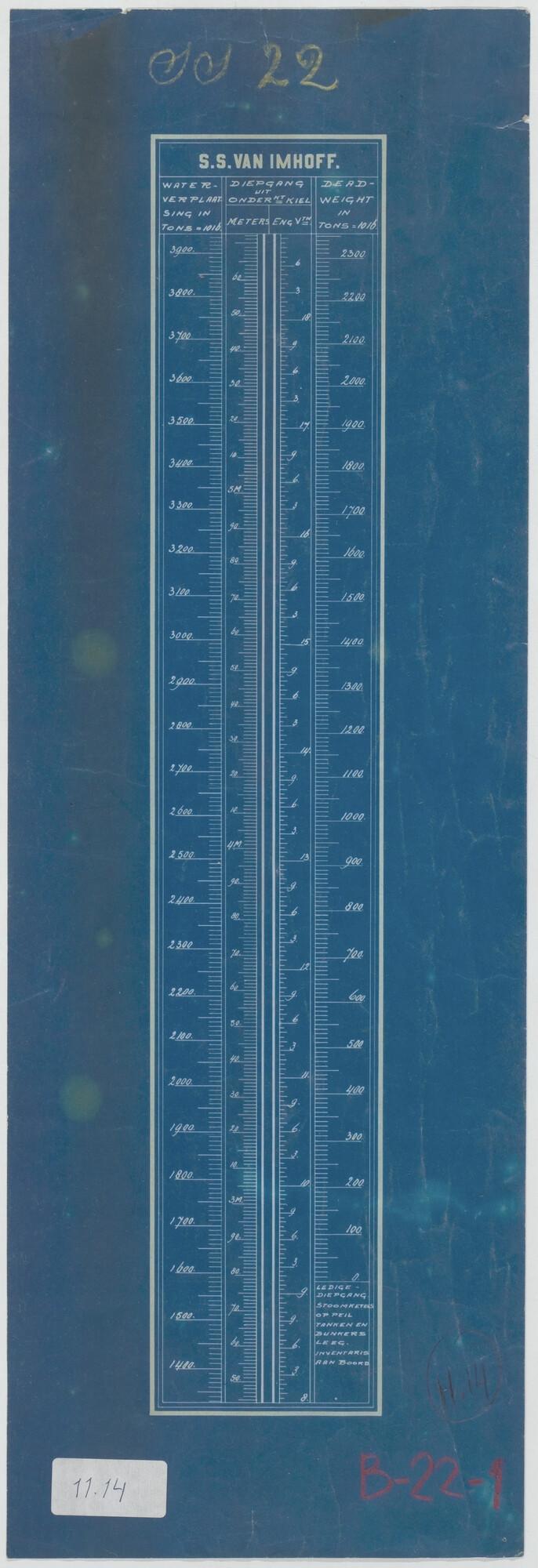 Schaal van waterverplaatsing van het vrachtschip ss....