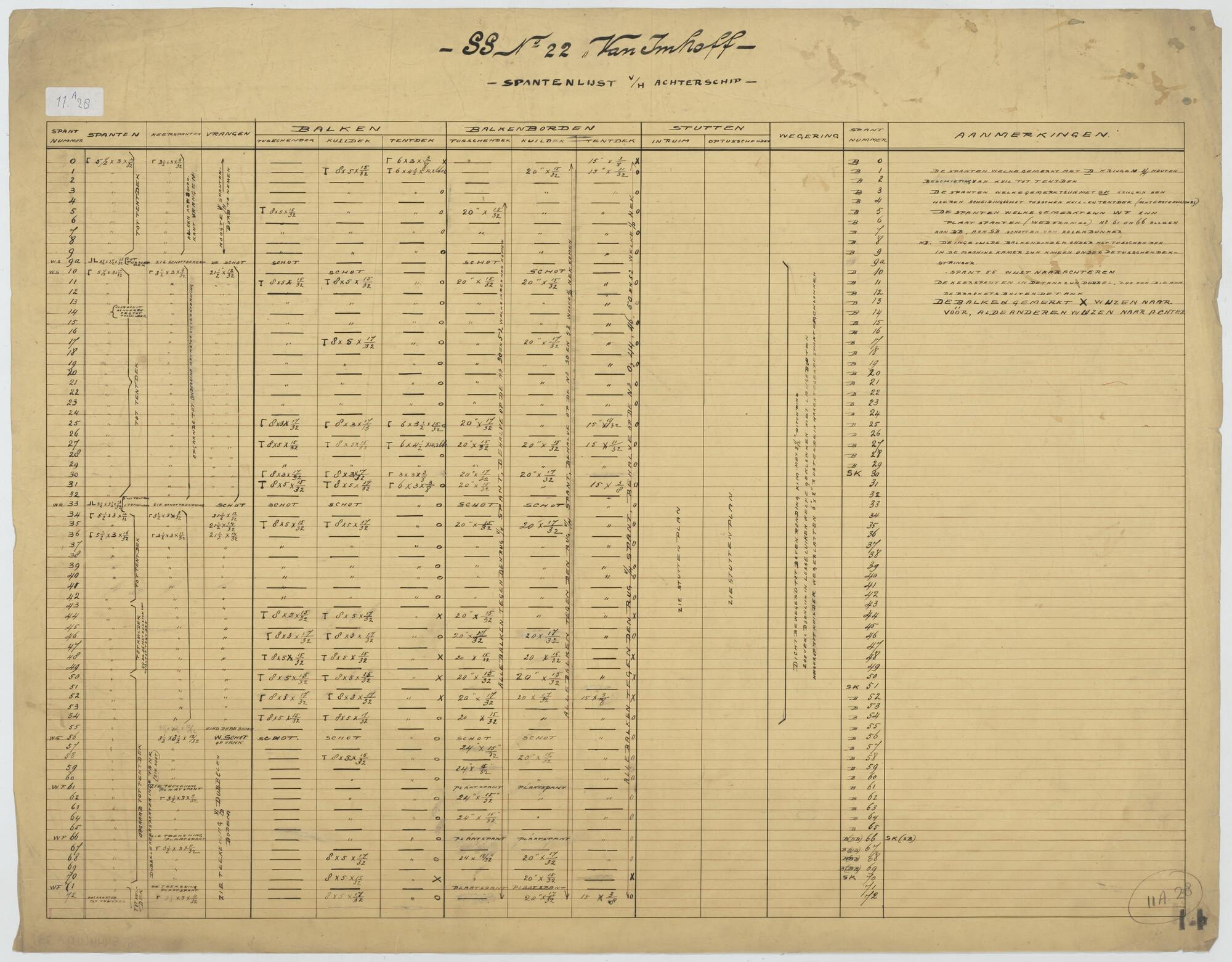 Spantenlijst achterschip van het vrachtschip ss. Hee...