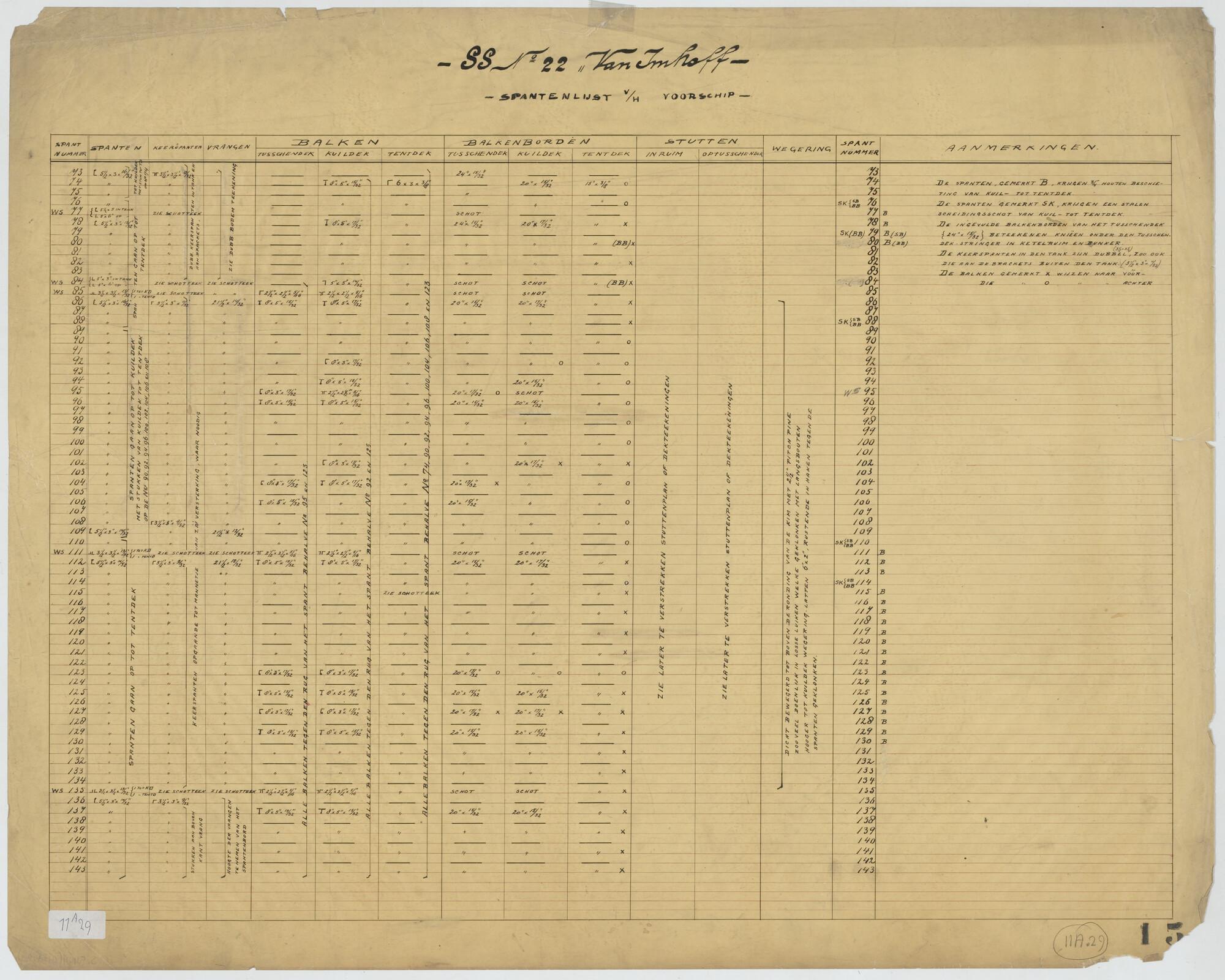 Spantenlijst voorschip van het vrachtschip ss. Heels...