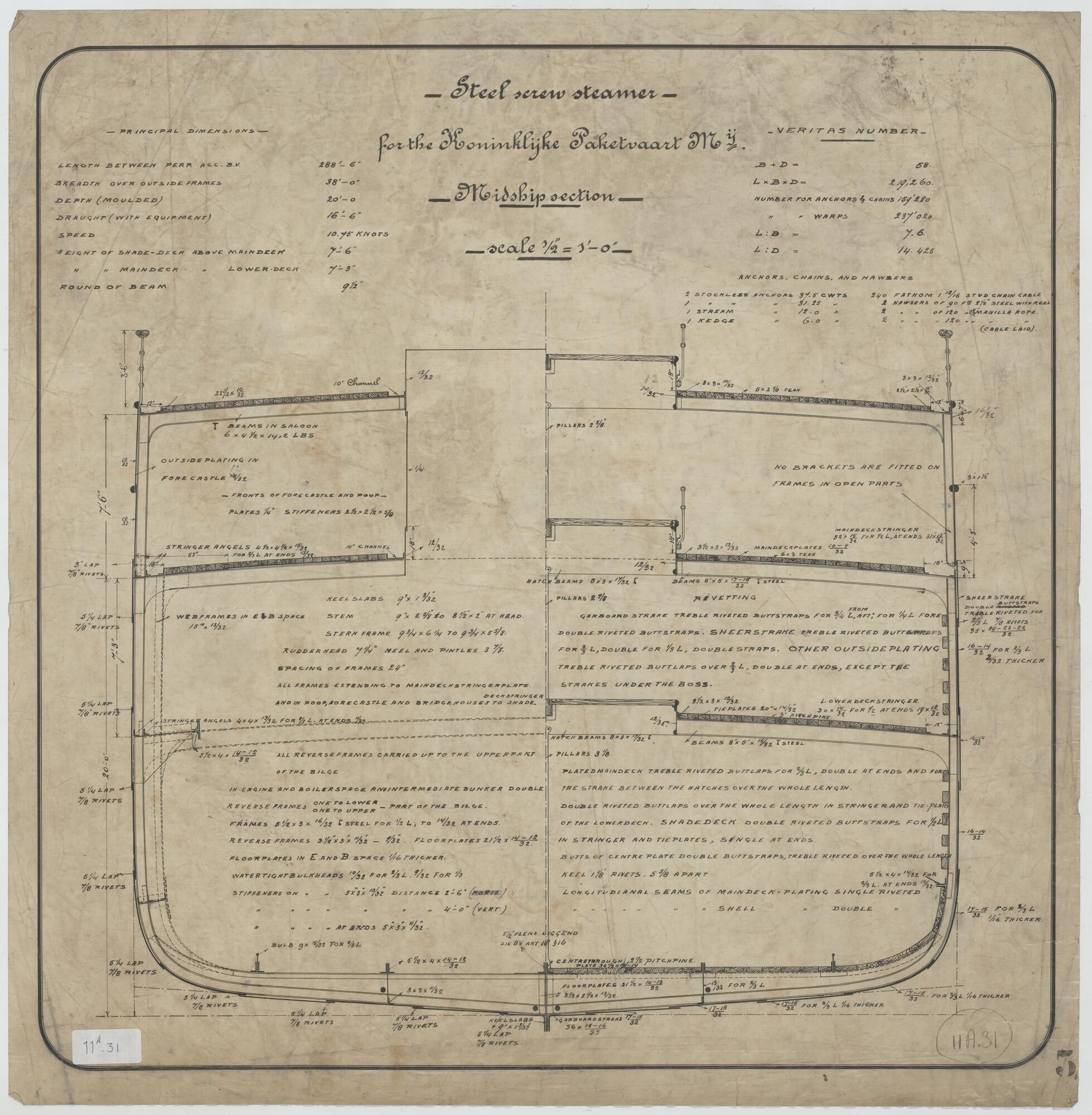 Lengte der spanten van het vrachtschip ss. Soembawa ...